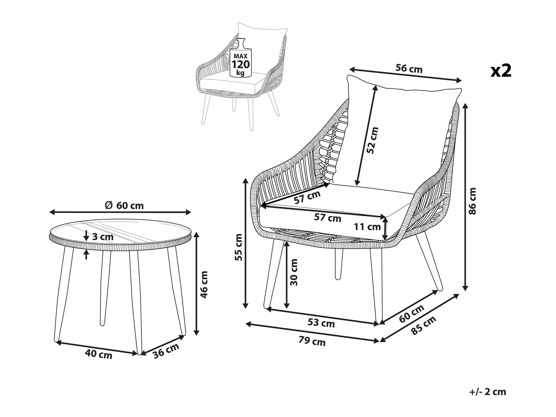 86 x 79 x 85 cm