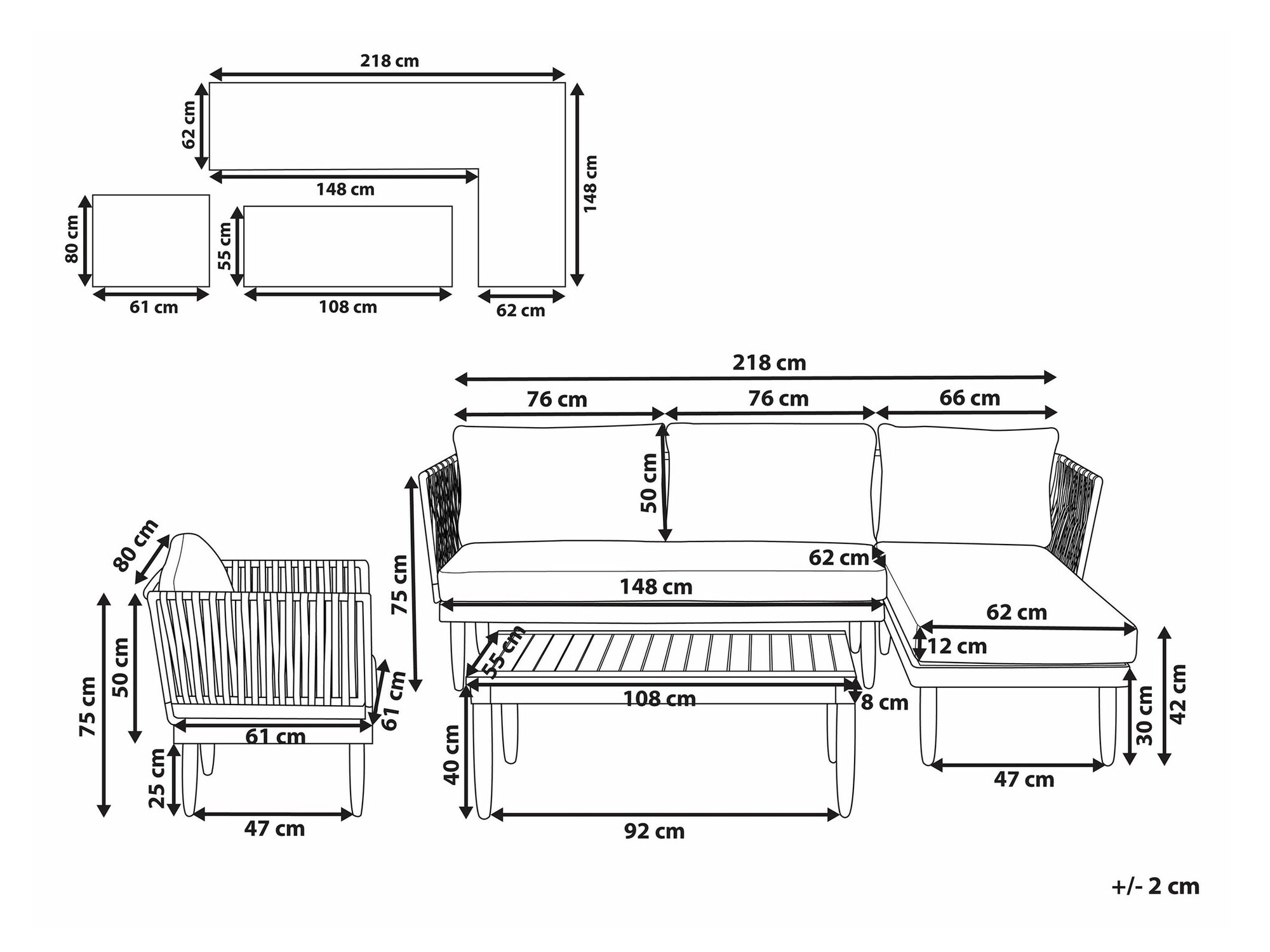 75 x 218 x 148 cm