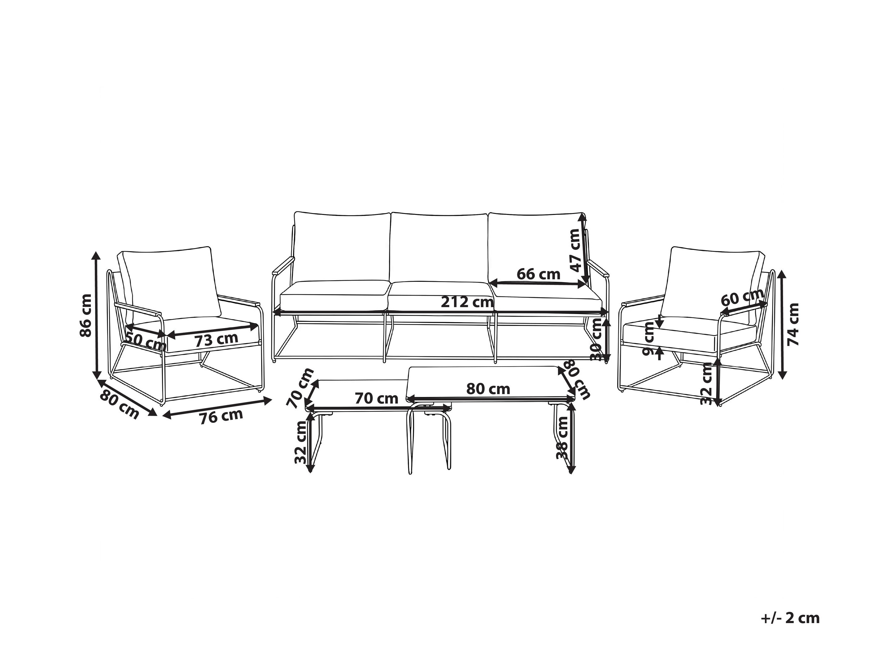 38 x 80 x 80; 32 x 70 x 70 cm