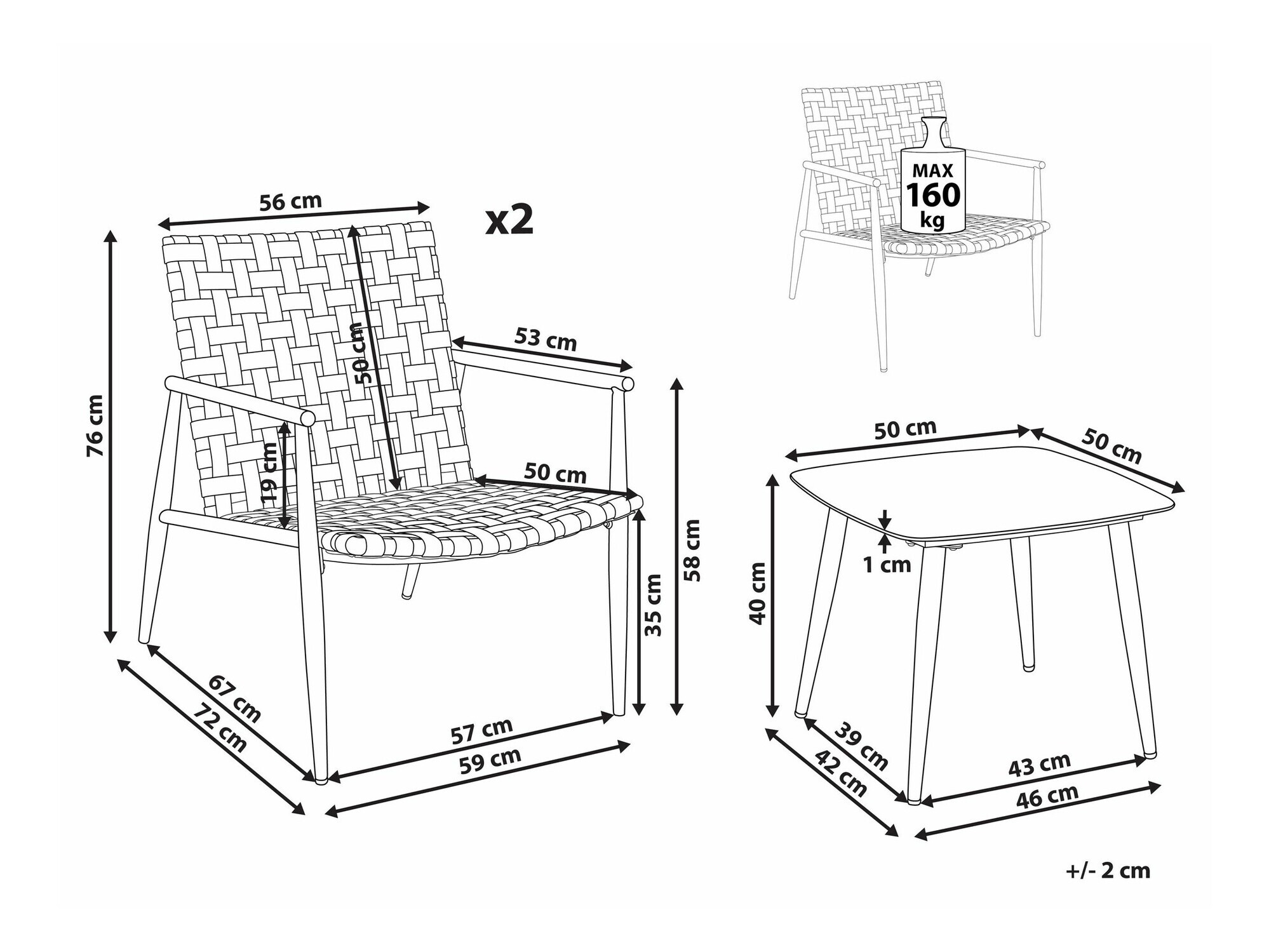 76 x 76 x 72 cm
