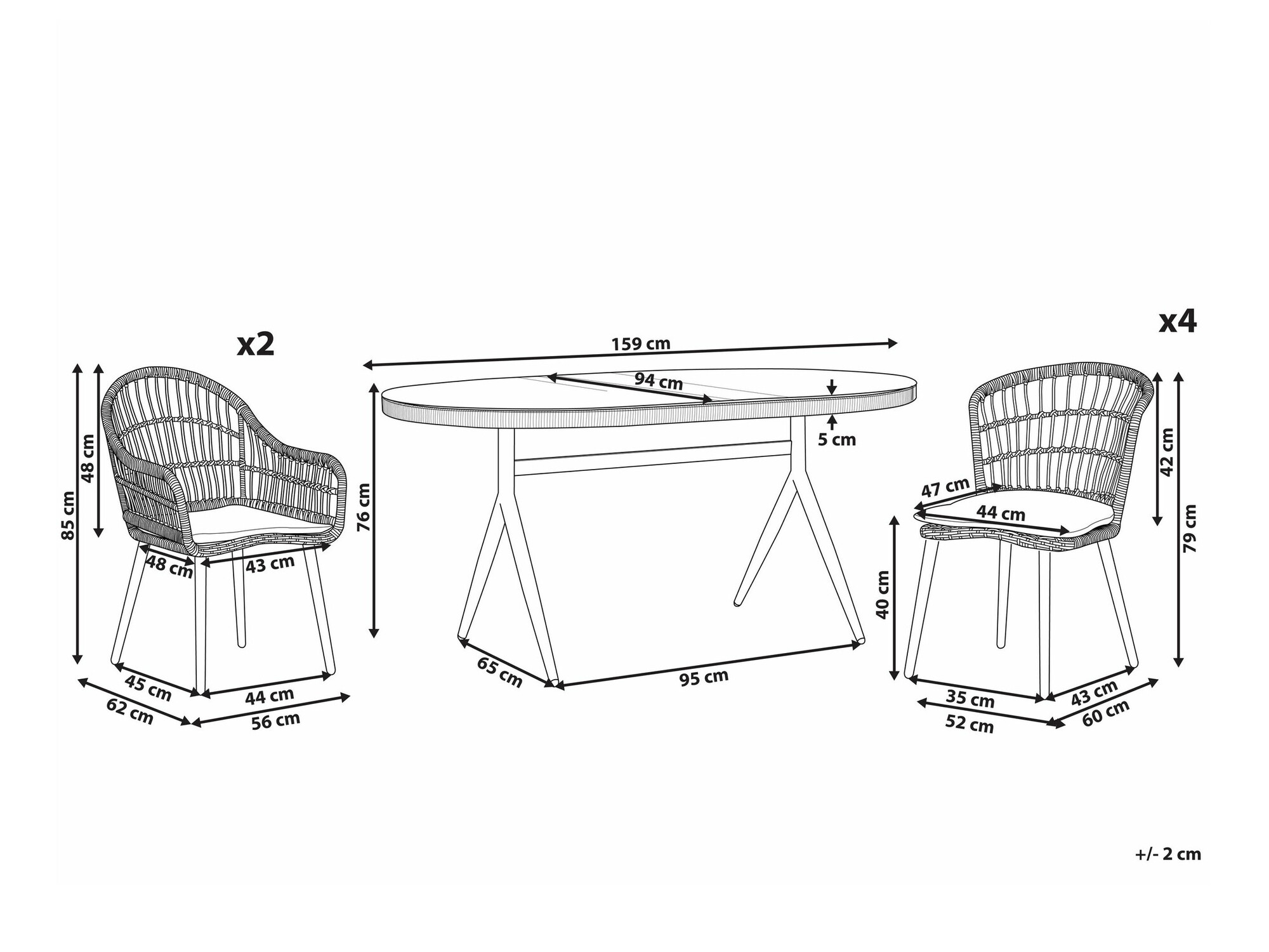 79 x 52 x 60; 85 x 56 x 62 cm