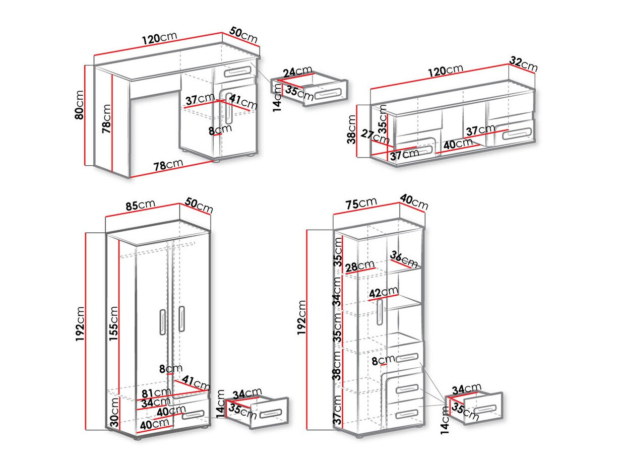 192 x 75 x 40 cm