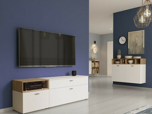 Колекцията от мебели за коридор със Скандинавски дизайн ще зарадва всеки любител на минималистичния стил. Преобладаващият цвят на дъб „Grandson“ се допълва от ярко бяло. Колекцията е декорирана с метални дръжки, които се вписват идеално в дизайна на мебелите. Всички продукти са покрити с безцветен материал, който предпазва от леки надрасквания. Покритите с пластмаса краища са устойчиви на механични повреди, причинени от ежедневна употреба. Чекмеджетата и вратите са с безшумен механизъм за затваряне, специален с това, че предпазва от бързо затваряне. Функционалността и удобството са неразделни характеристики на колекцията, произведена в Германия. Създайте скандинавски интериор в дома си с колекцията за коридор.