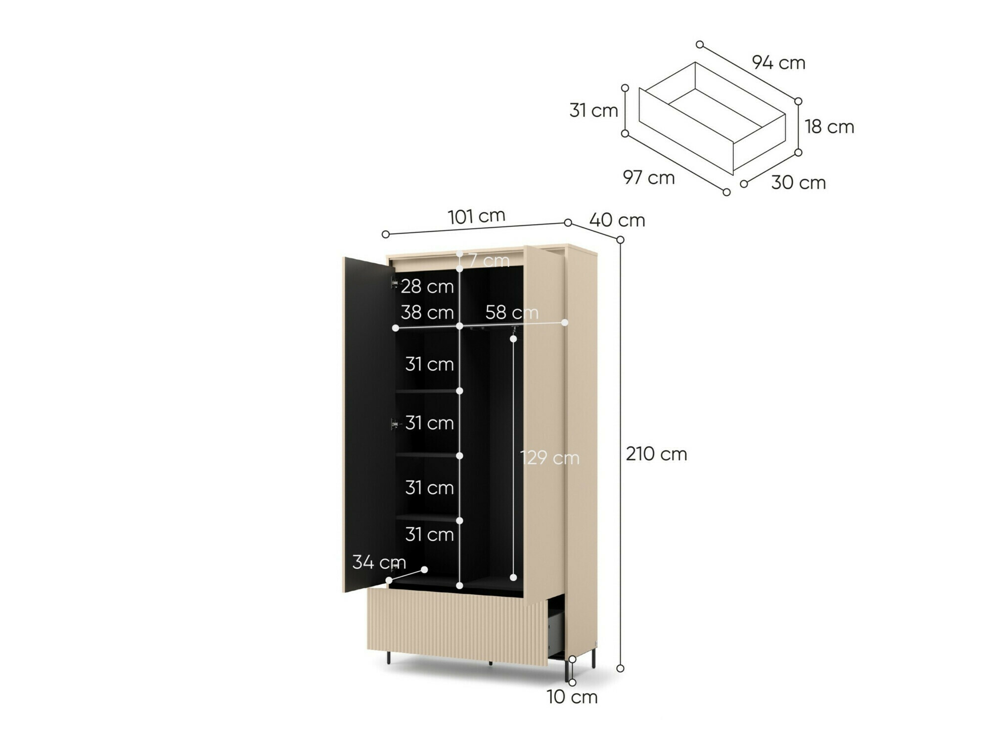 210 x 101 x 40 cm