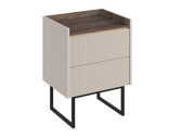 Тази колекция мебели се отличава с мекота, постигната чрез нежно заоблени ъгли и хармонични линии. Отличителна черта на дизайна е текстурираното закалено стъкло, което фино подчертава мебелите с добавена текстура и характер. Минималистичните метални дръжки запазват изчистената естетика и се съчетават безпроблемно дори с модерен интериор. Ежедневният комфорт е осигурен от механизма за плавно затваряне. Тази колекция съчетава изискан класически стил и модерни дизайнерски решения.