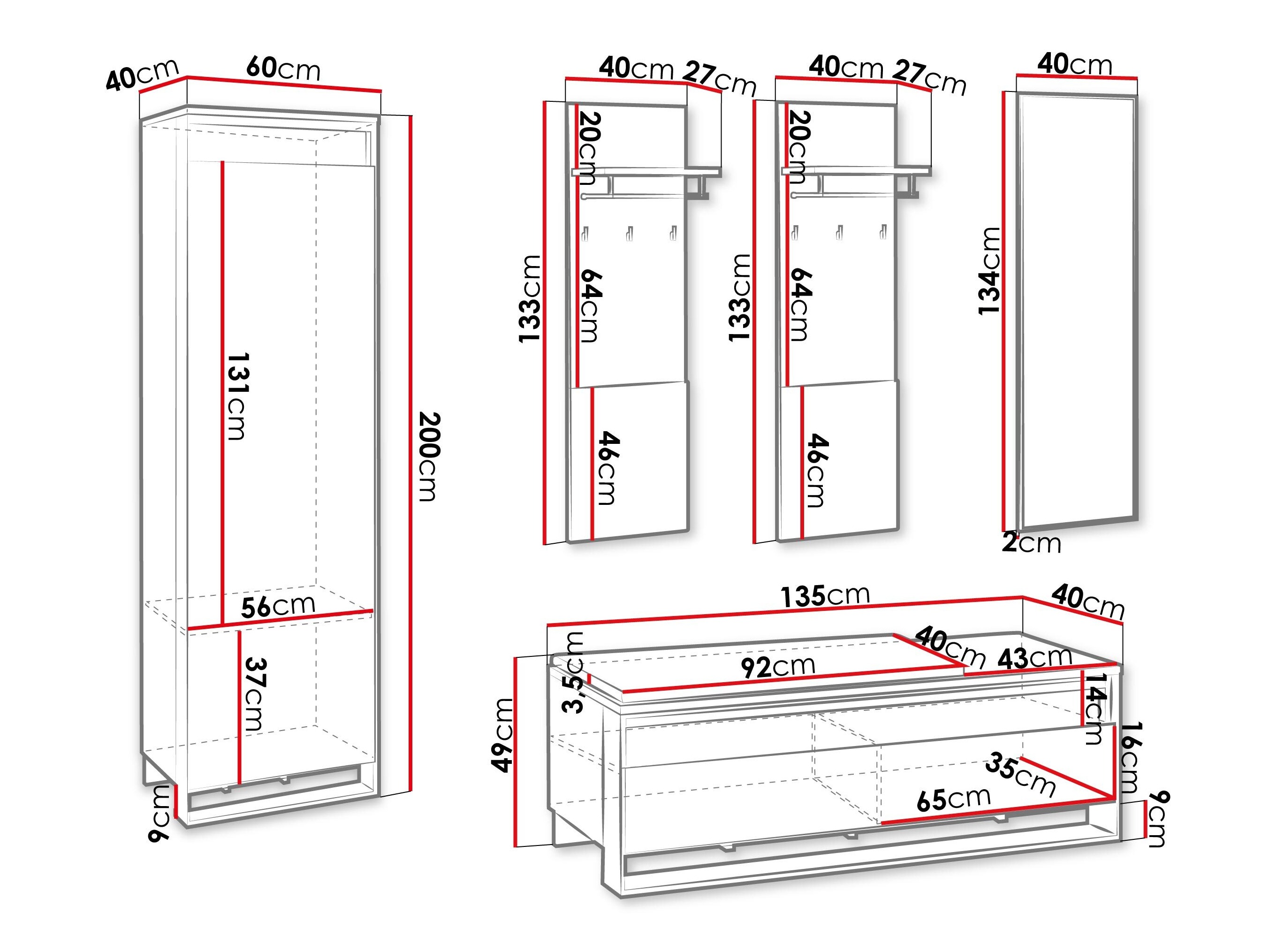 49 cm  135 cm  40 cm