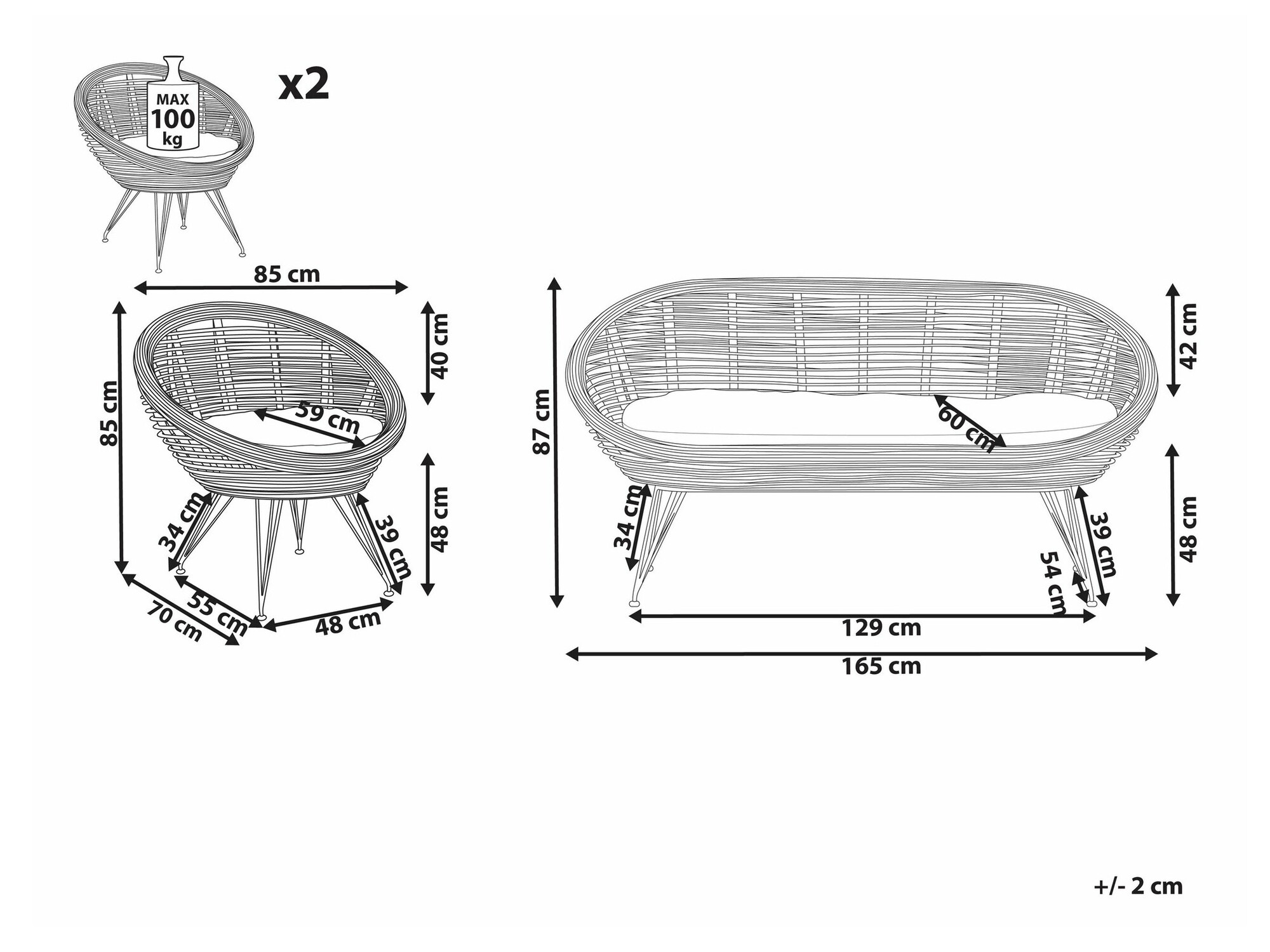 85 x 85 x 70 cm
