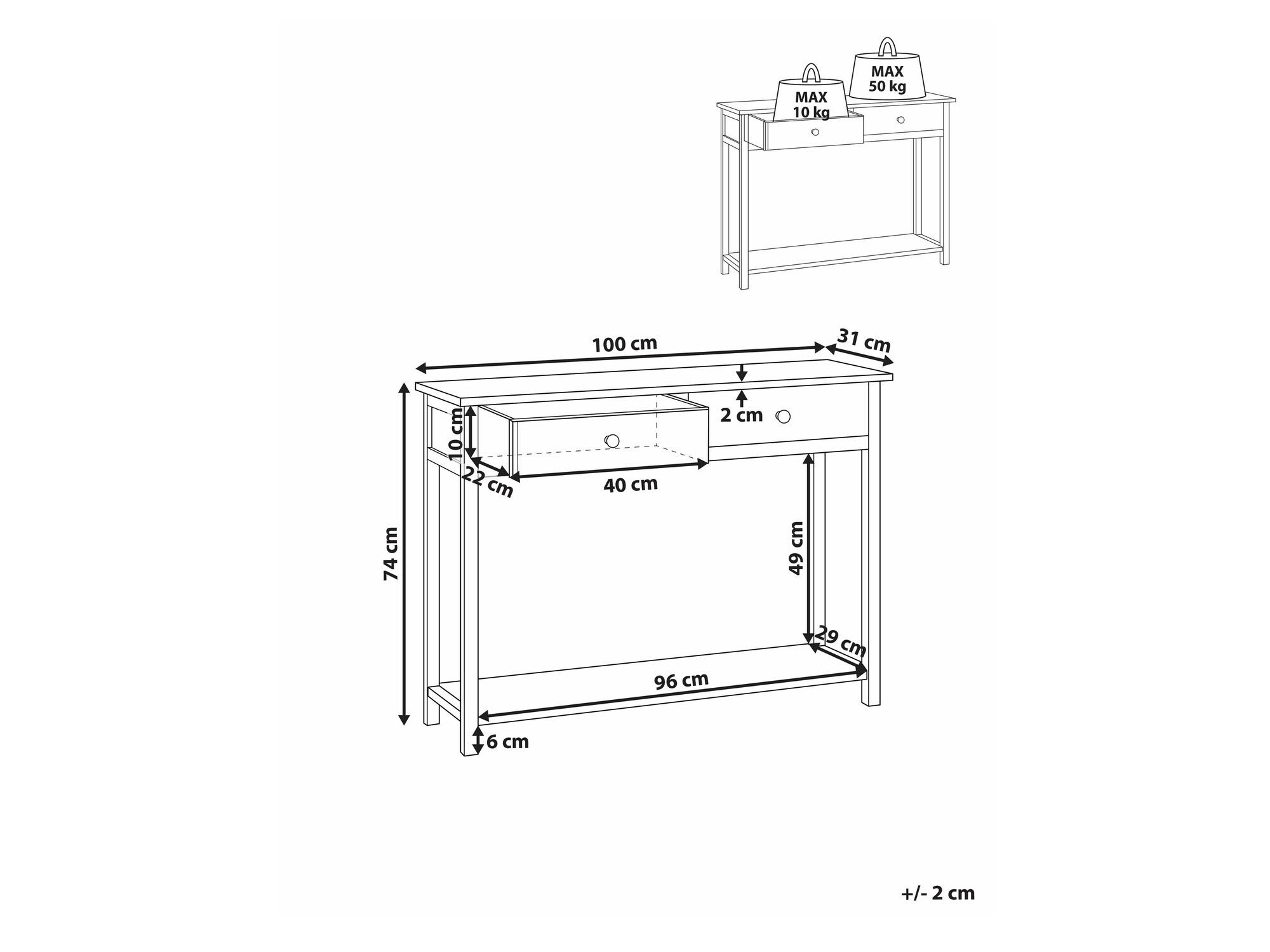 Максимално натоварване на чекмеджето: