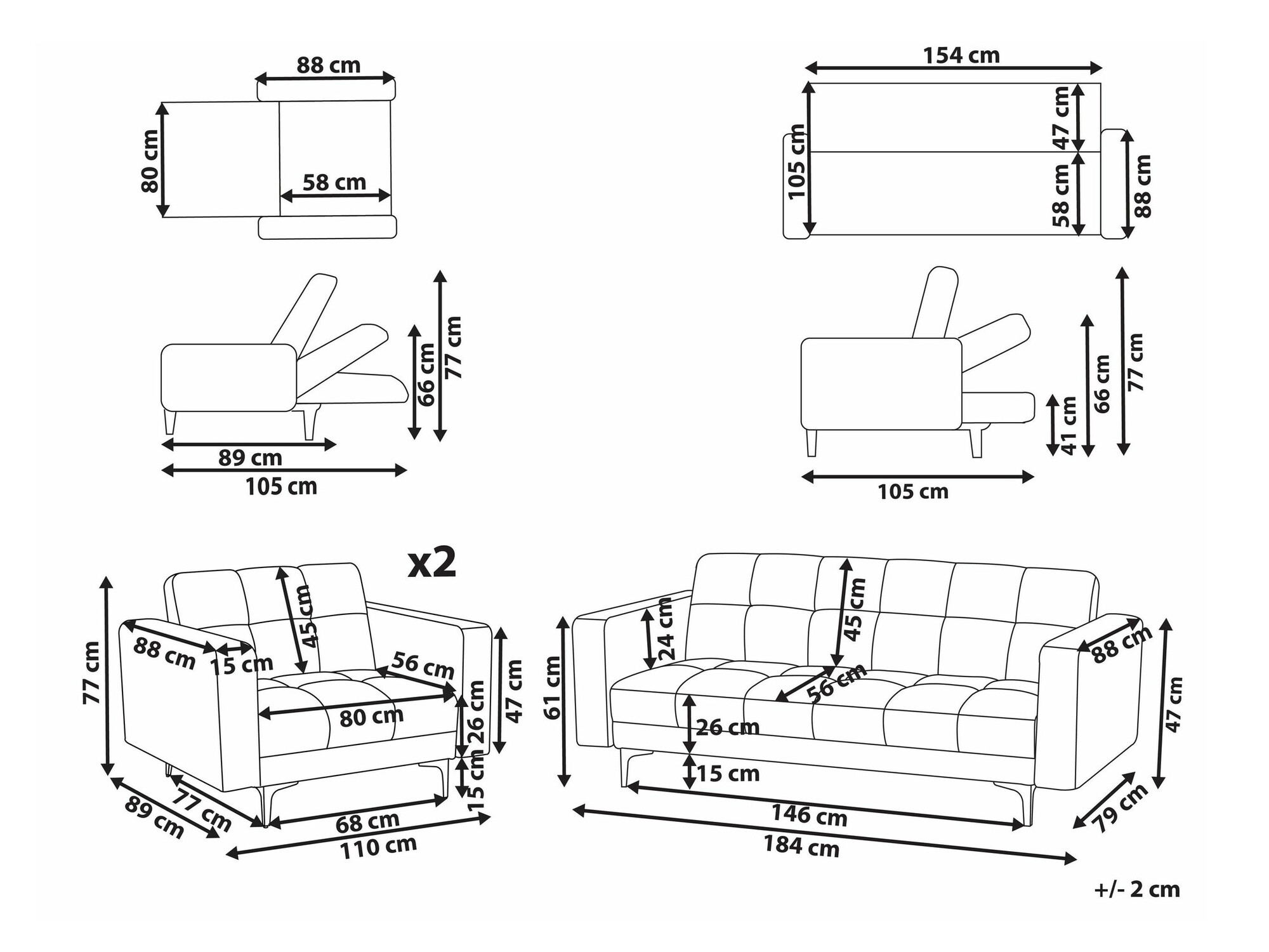77 x 184 x 88 cm