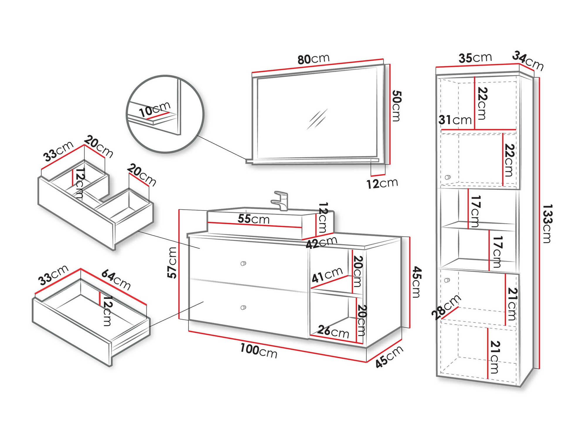 133 x 35 x 45 cm