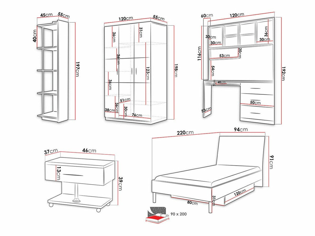 - 90 x 200 cm