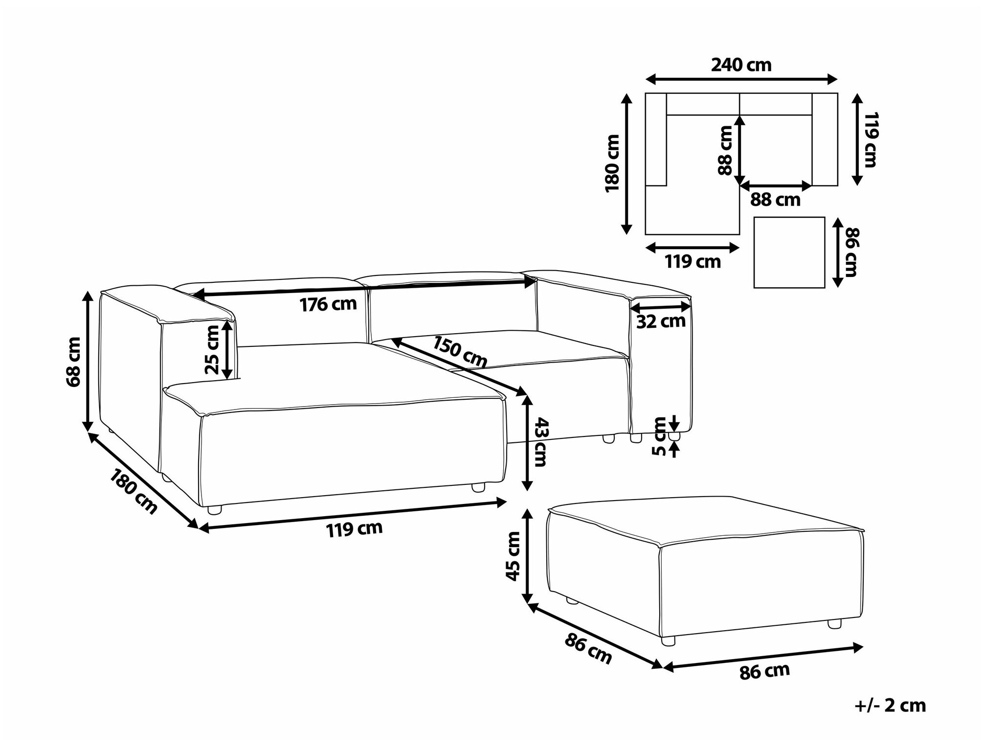 68 x 240 x 180 cm
