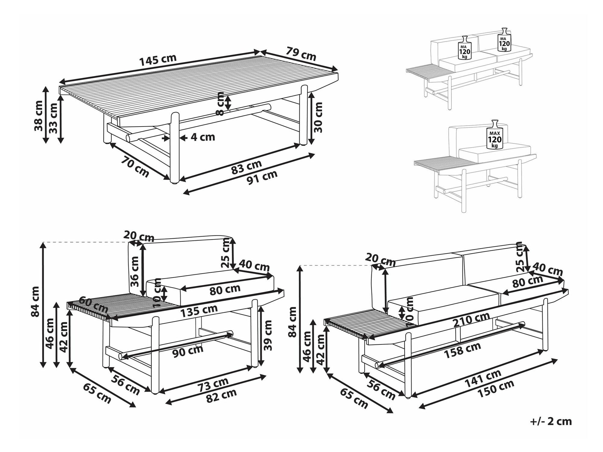 84 x 135 x 65; 84 x 210 x 65 cm