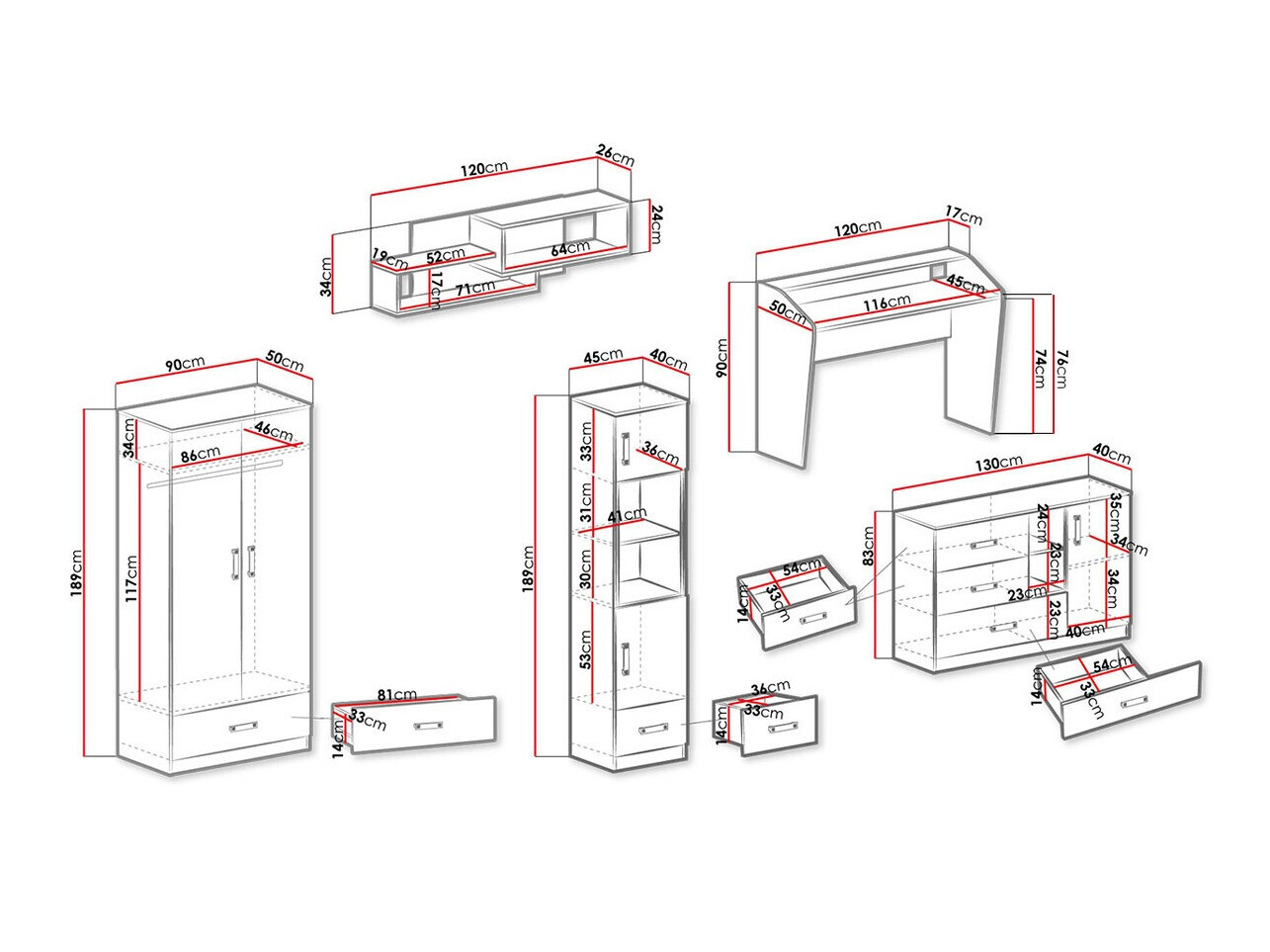 189 x 90 x 50 cm
