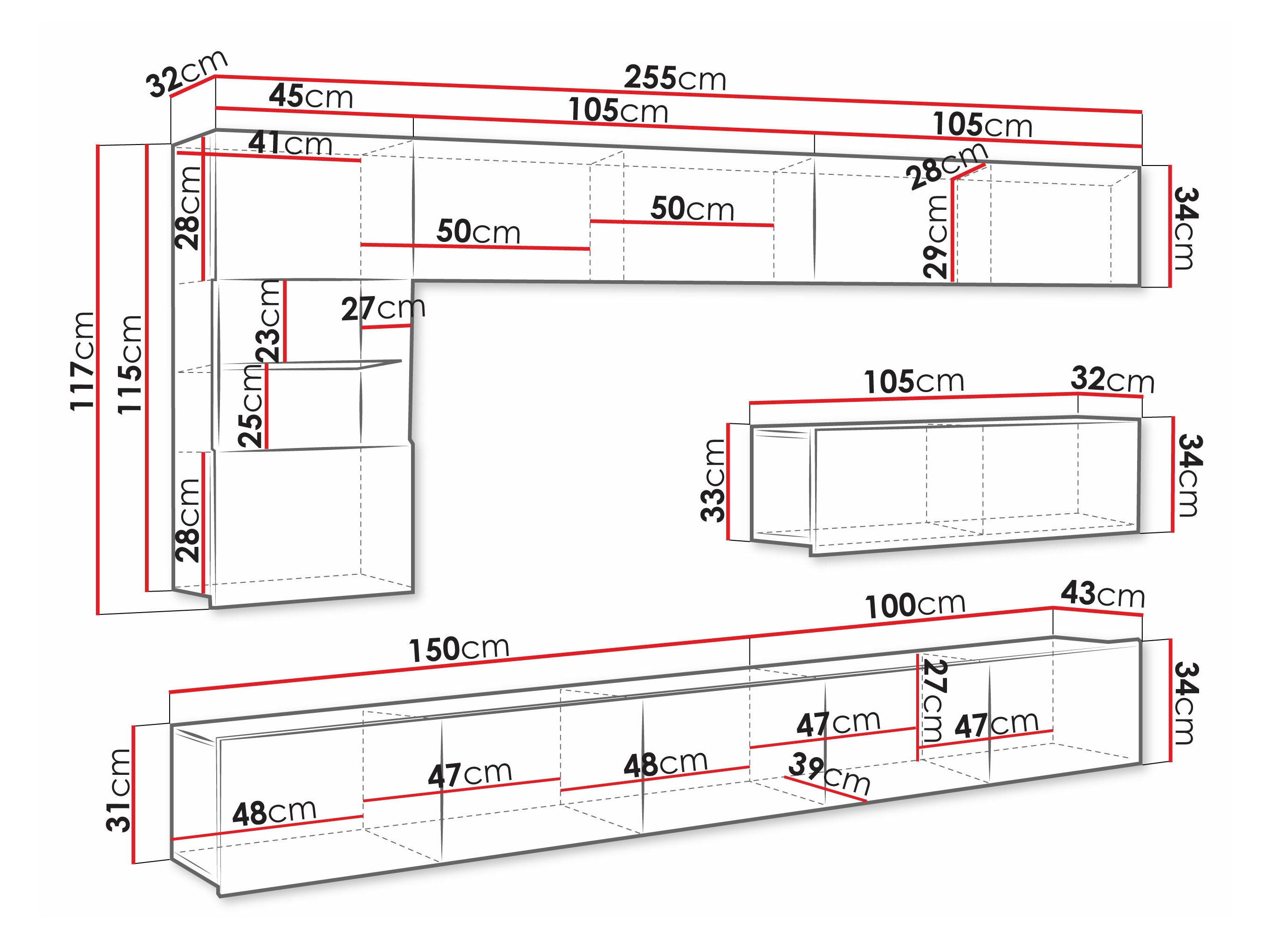34 x 105 x 32 cm