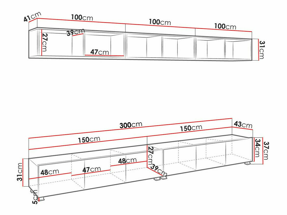 37 x 300 x 43 cm