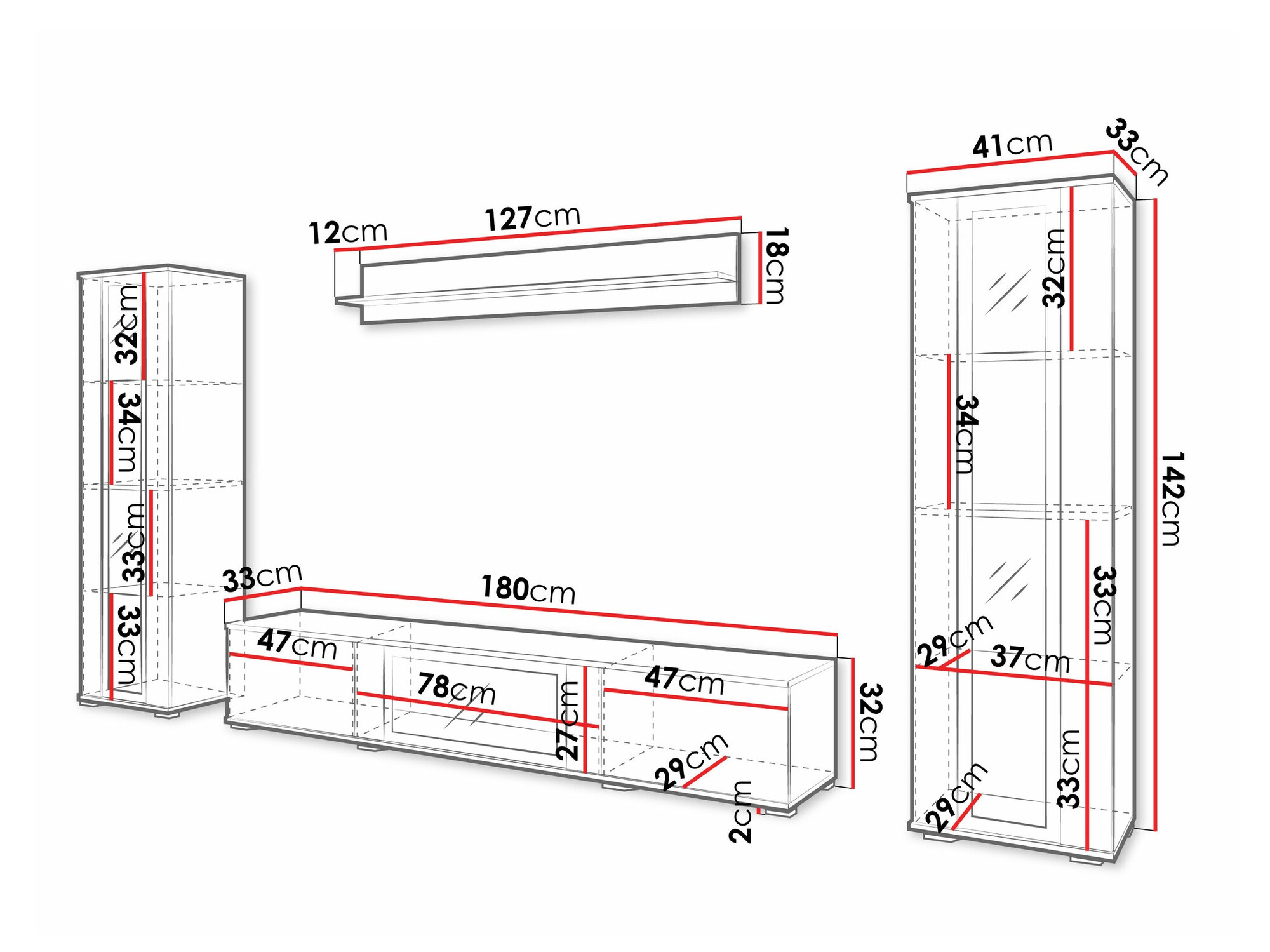 30 x 180 x 33 cm