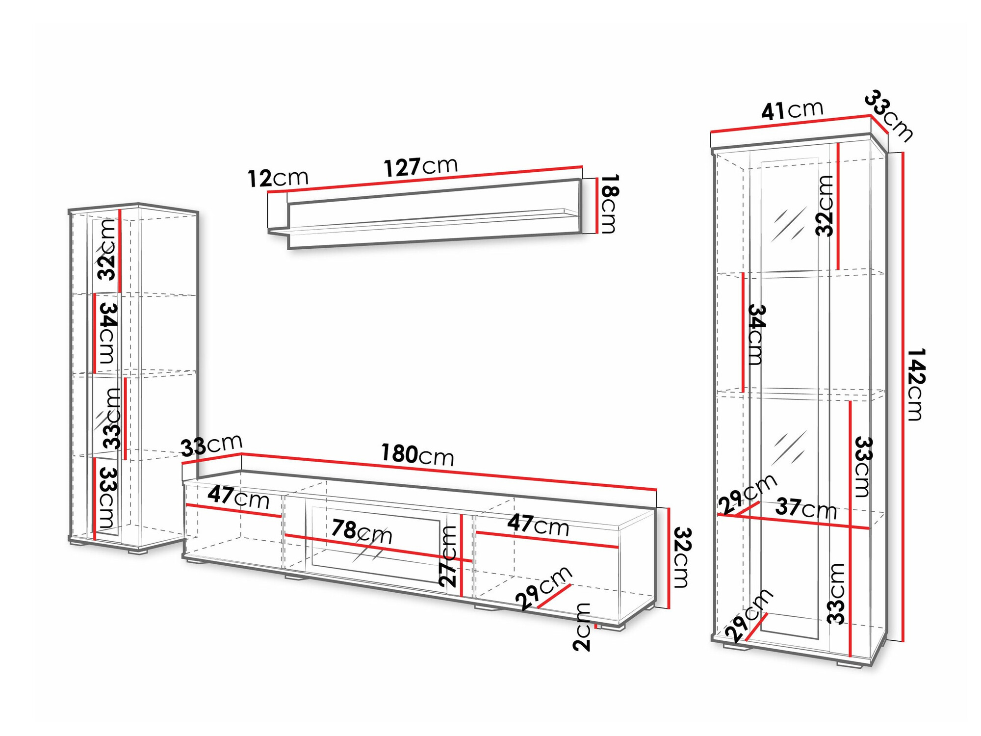 30 x 180 x 33 cm