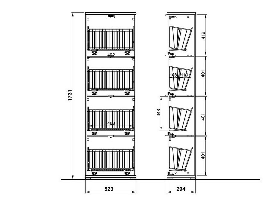 174 x 53 x 30 cm