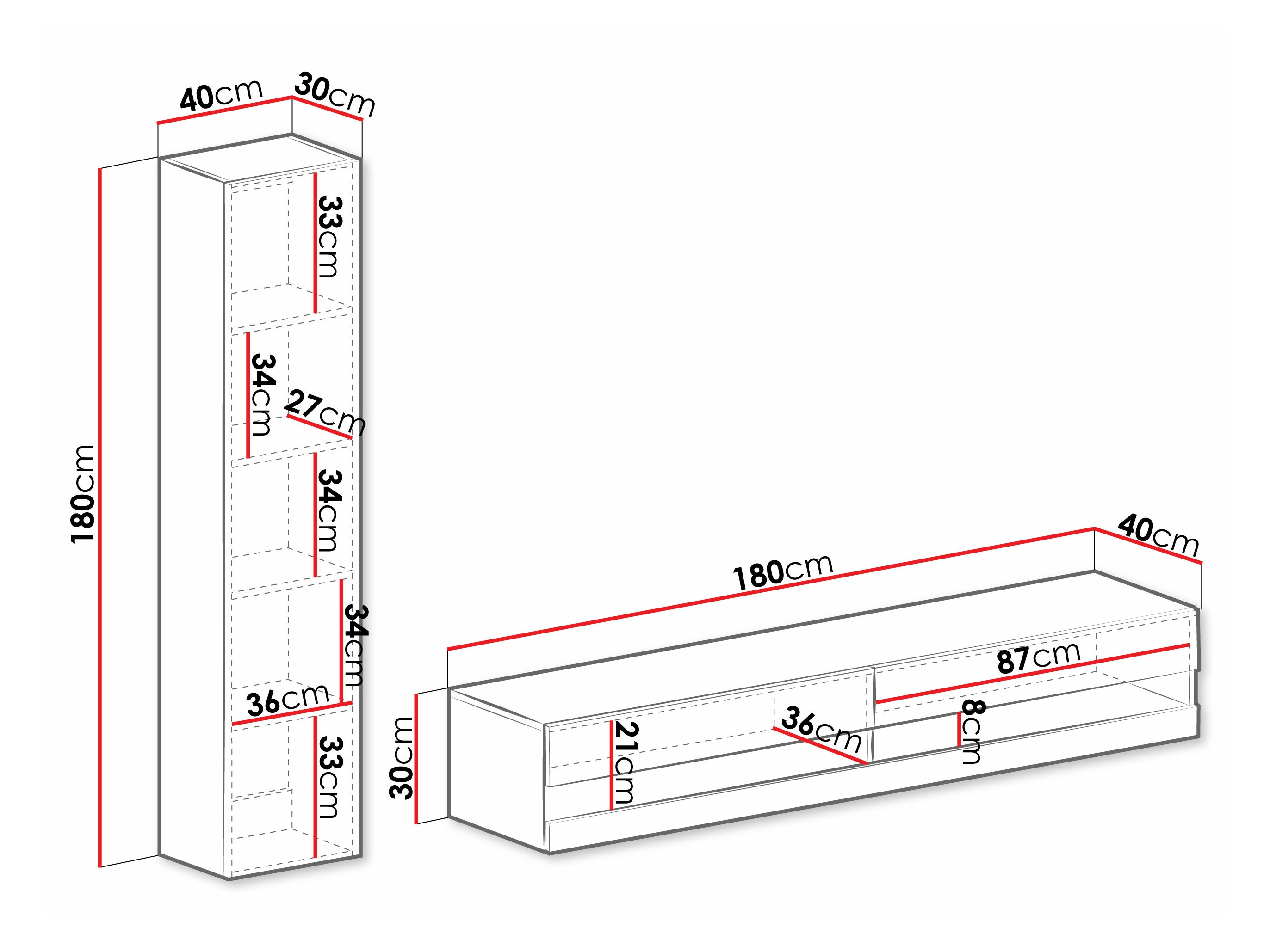 30 x 180 x 40 cm