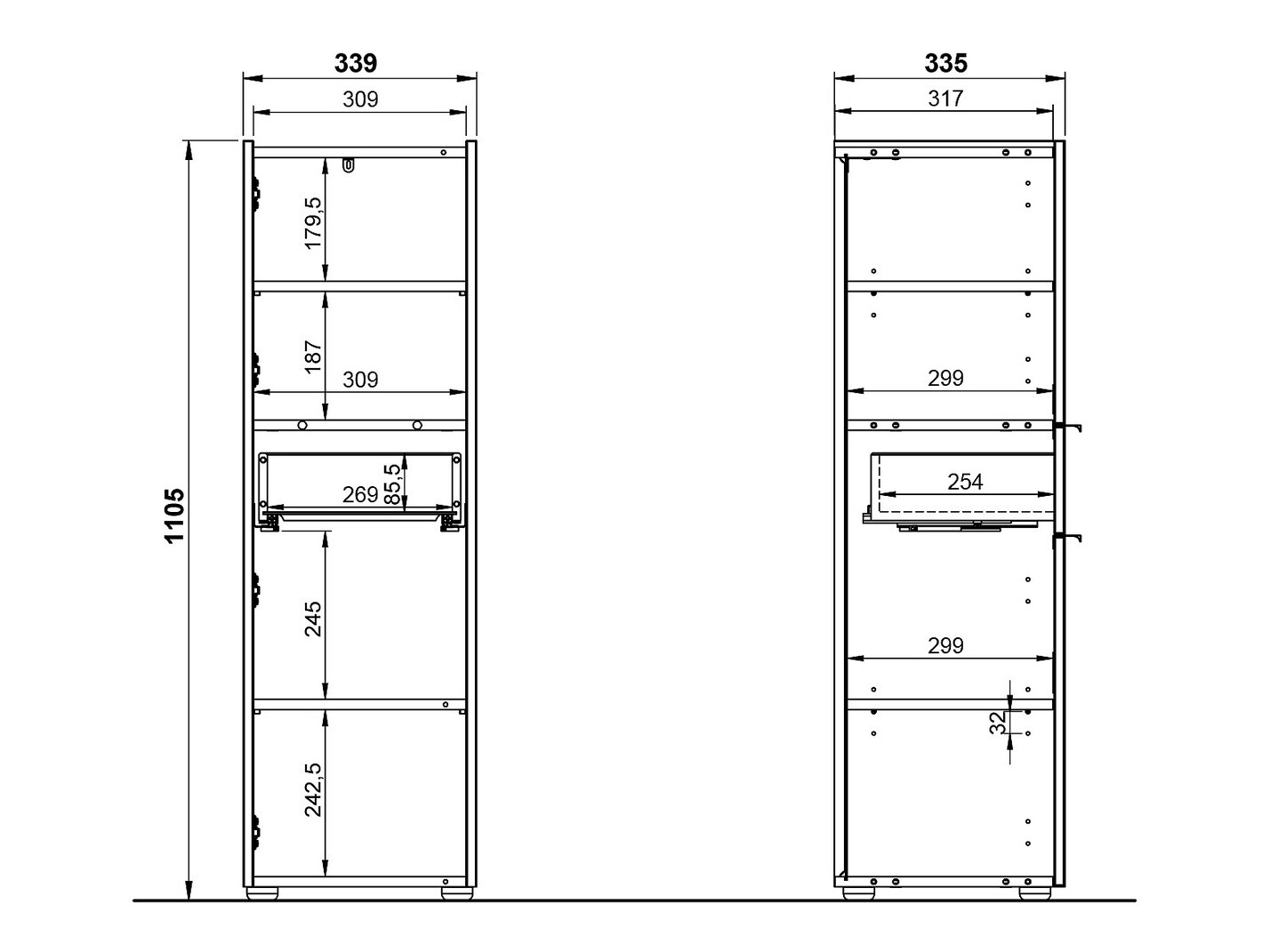 Размери на шкафа: