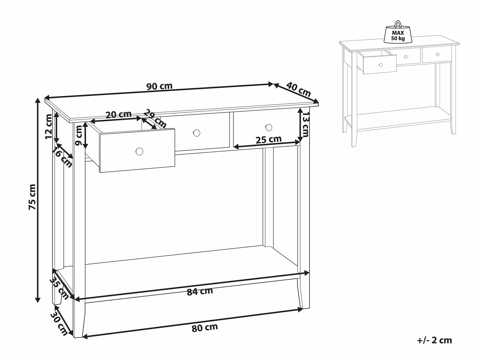 Максимално натоварване на чекмеджето: