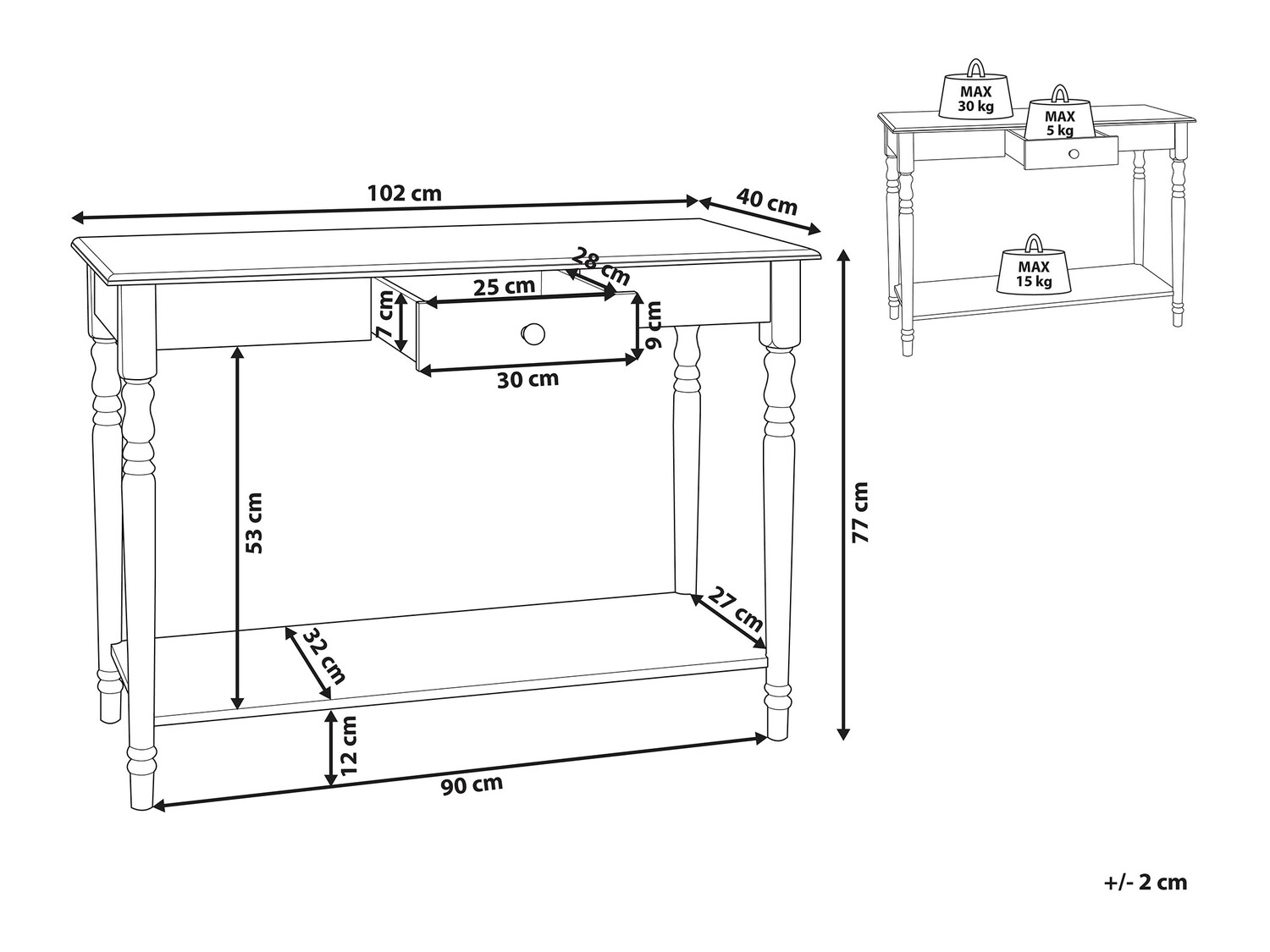 Максимално натоварване на чекмеджето: