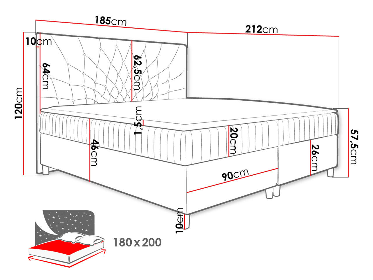 - 180 x 200 cm