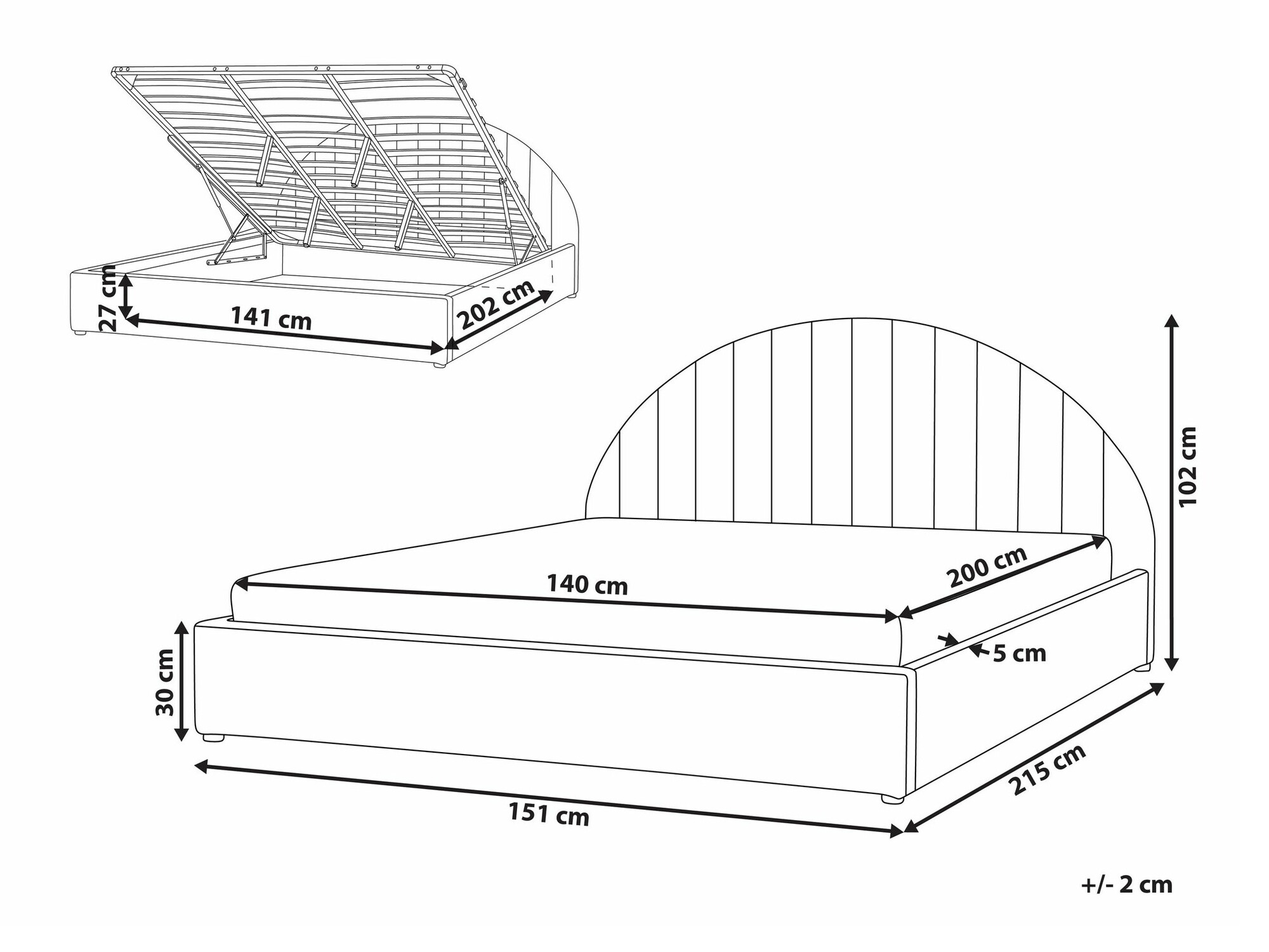 27 x 202 x 141 cm