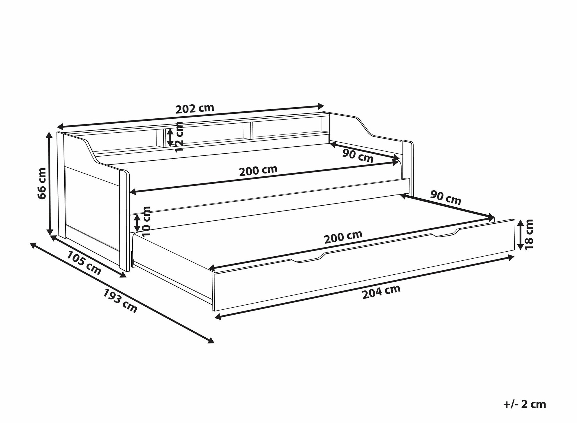 - 90 x 200 cm