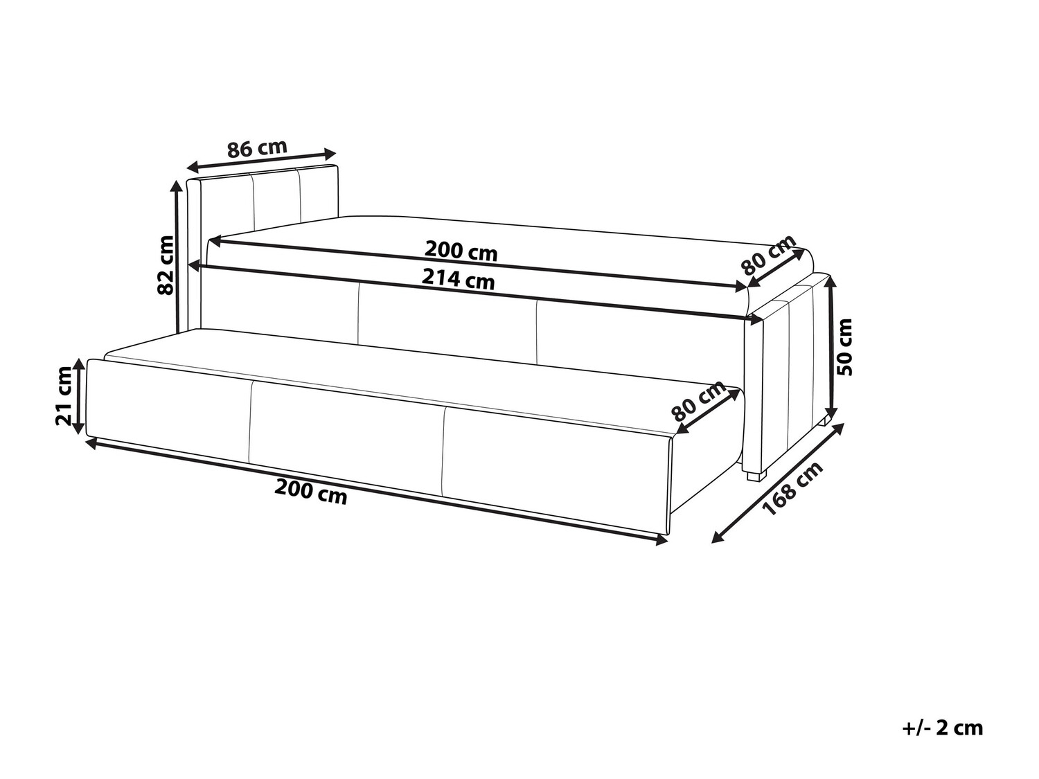 - 80 x 200 cm