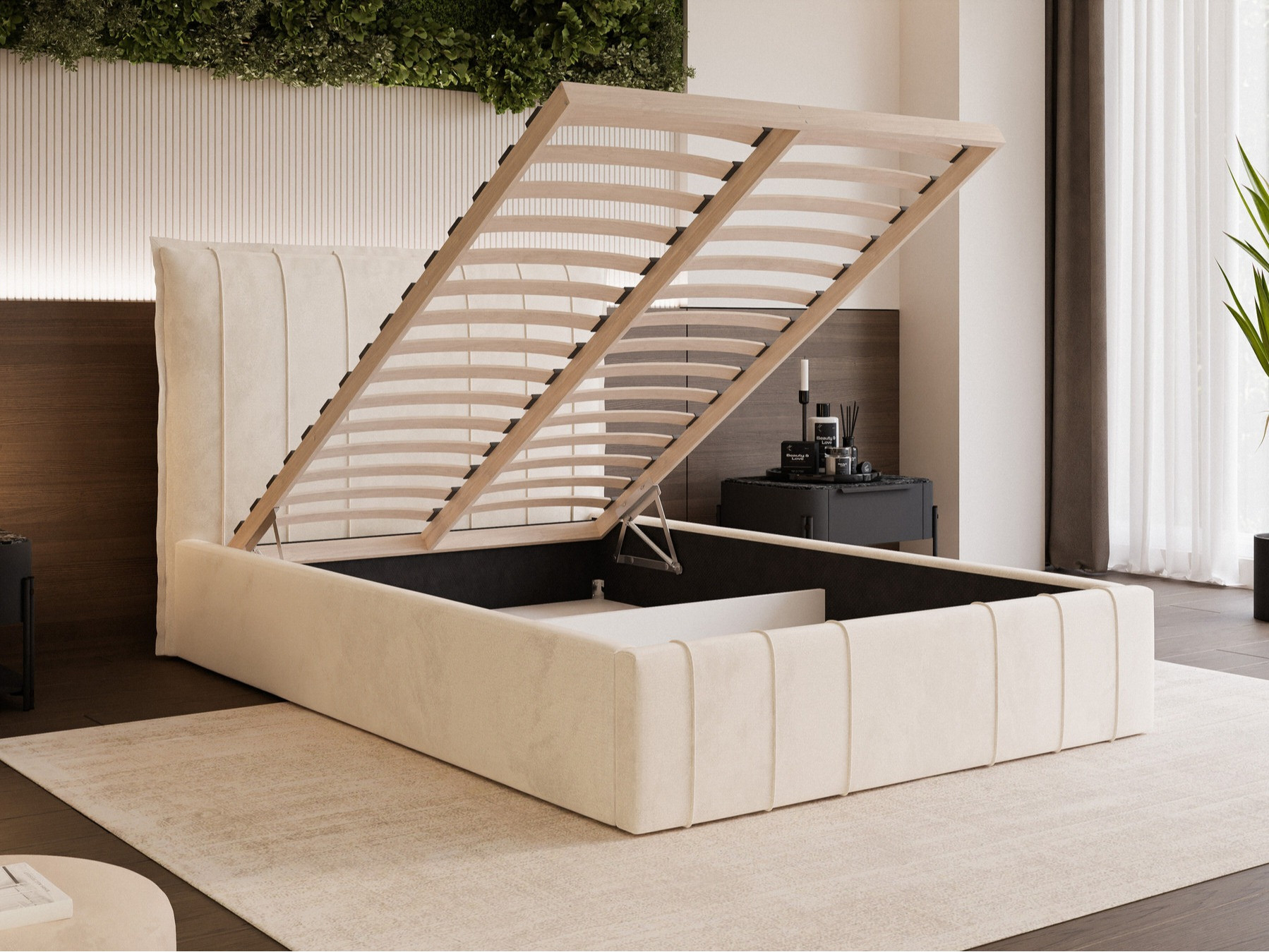 Принципът на механизма се основава на пружини, които поемат част от товара и улесняват повдигането на леглото. Пружините улесняват процеса на повдигане, но част от товара също се оставя на човешка сила. В случай, че е необходимо да се намали силата на механизма, има възможност за сваляне на пружините.