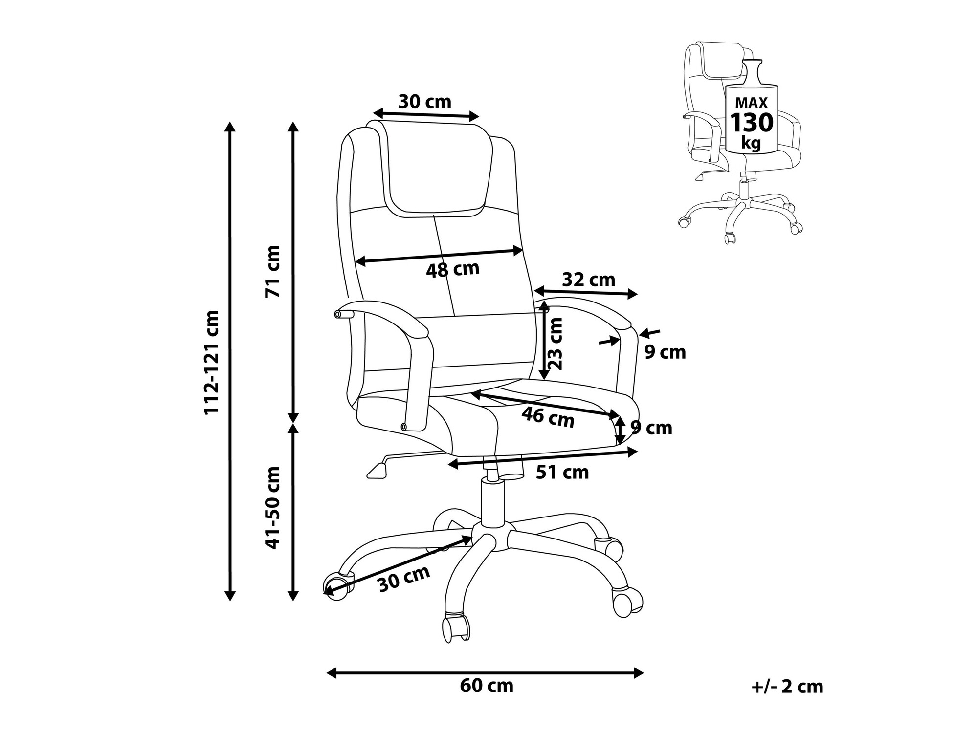 Ширина на облегалката: