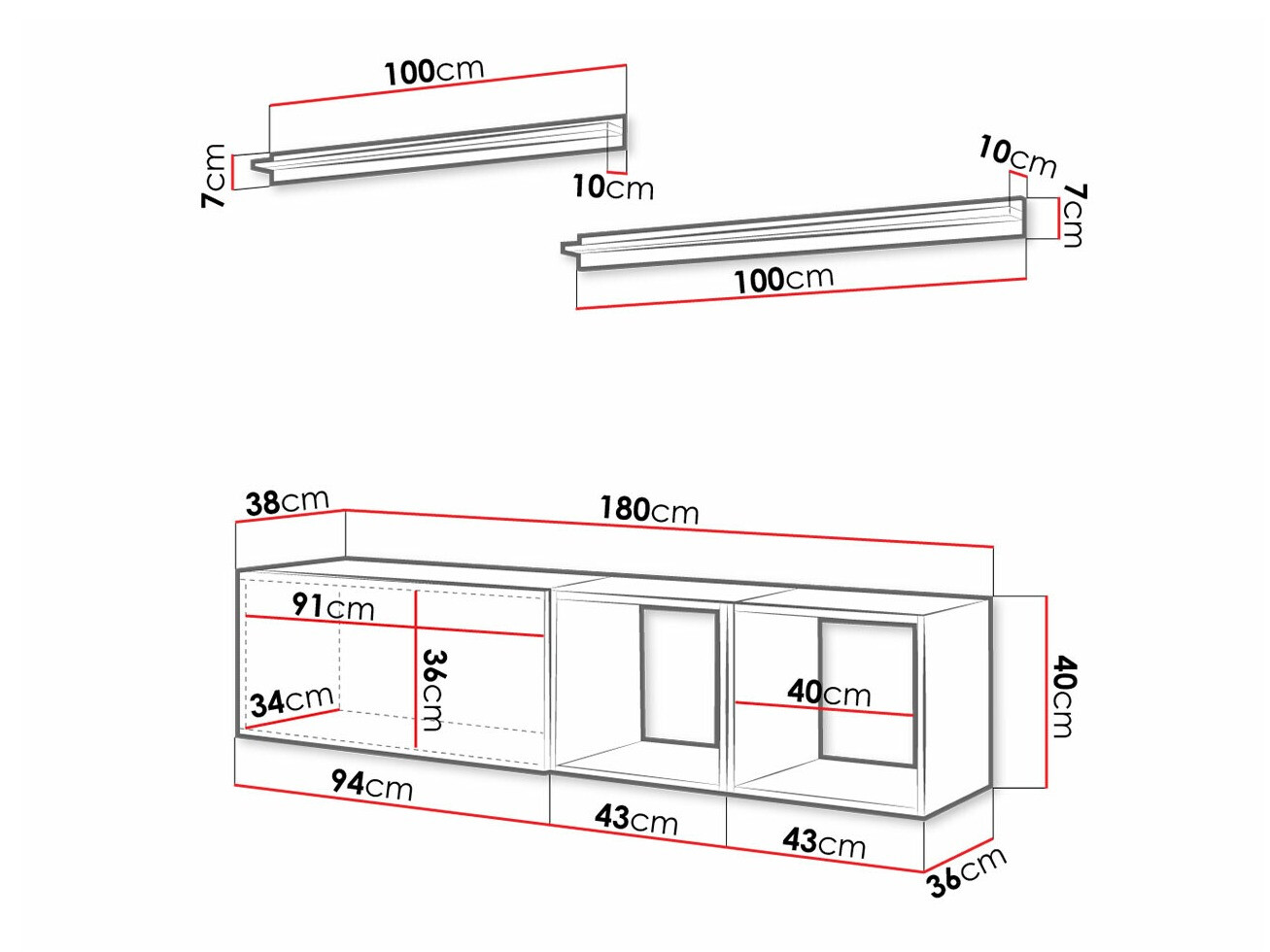 40 x 180 x 38 cm