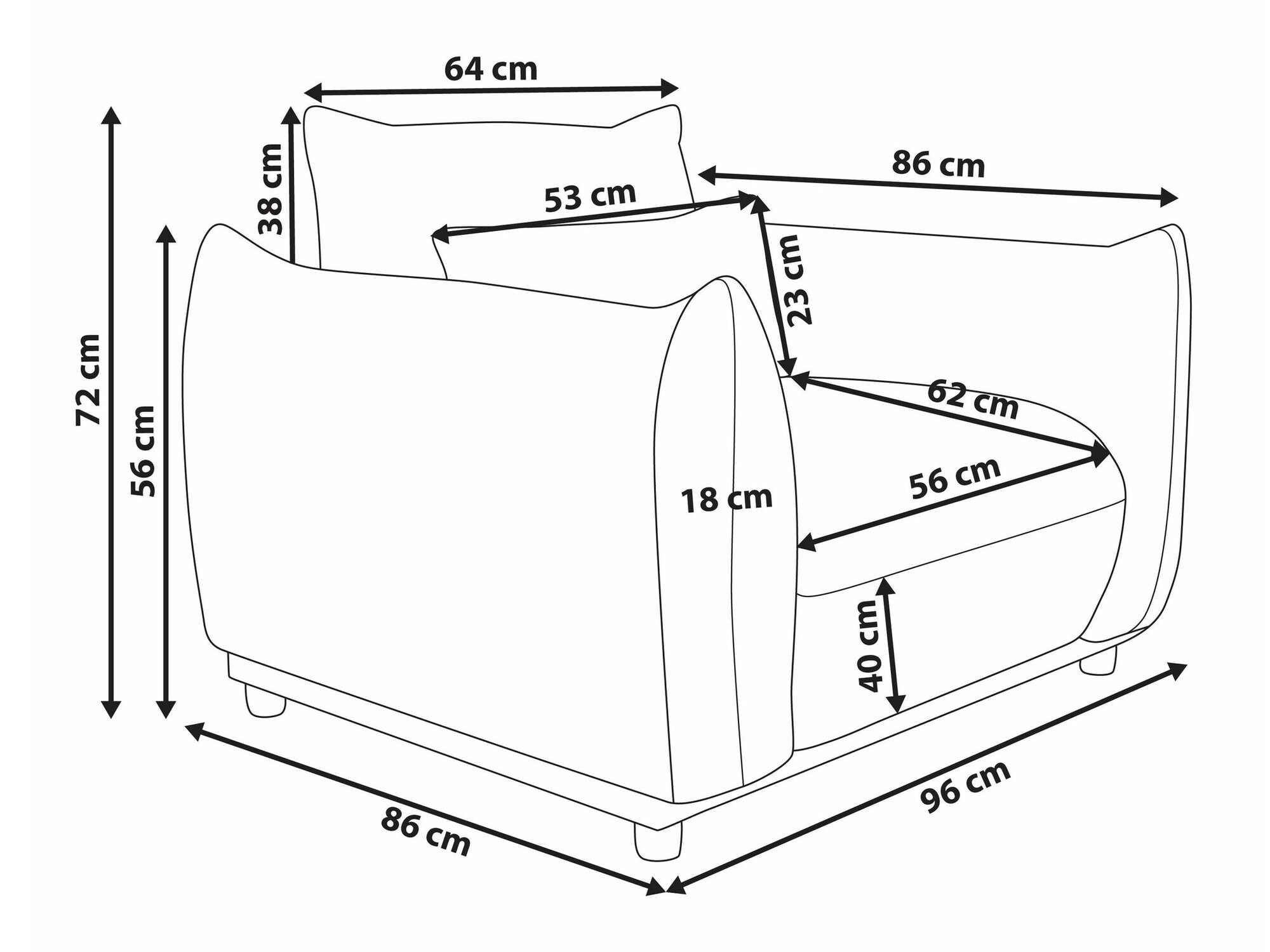Дълбочина на възглавница на седалката: