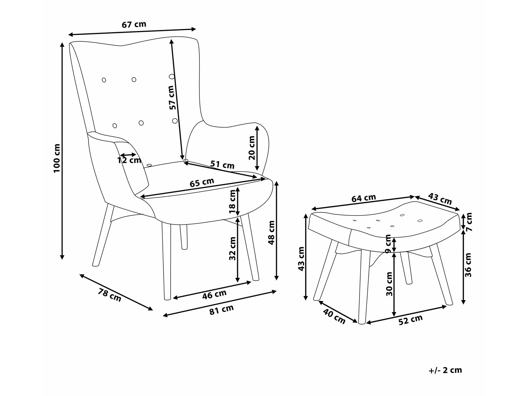 Размер на пуфа:
