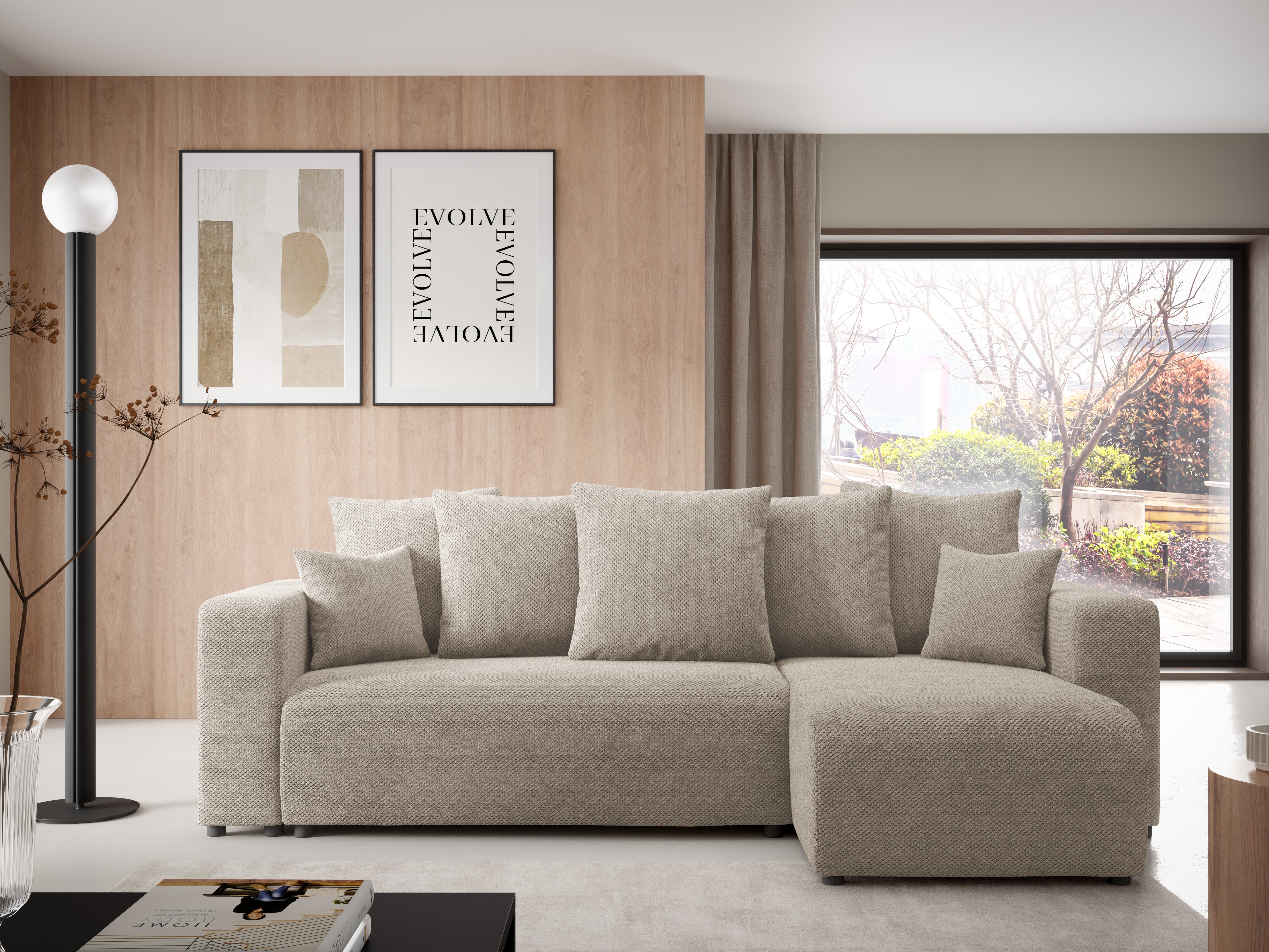 Тази мека и изключително гладка плюшена материя има текстура, наподобяваща свързани помежду си малки топки, създавайки уникално привлекателен вид. Идеален е за домове с деца и домашни любимци. Тъканта е изработена по иновативна технология, която предотвратява абсорбирането на течности, позволявайки разлятото да се избърсва със суха кърпа. Повърхността на плата може да се почиства с нежни продукти, предназначени за тапицерия.