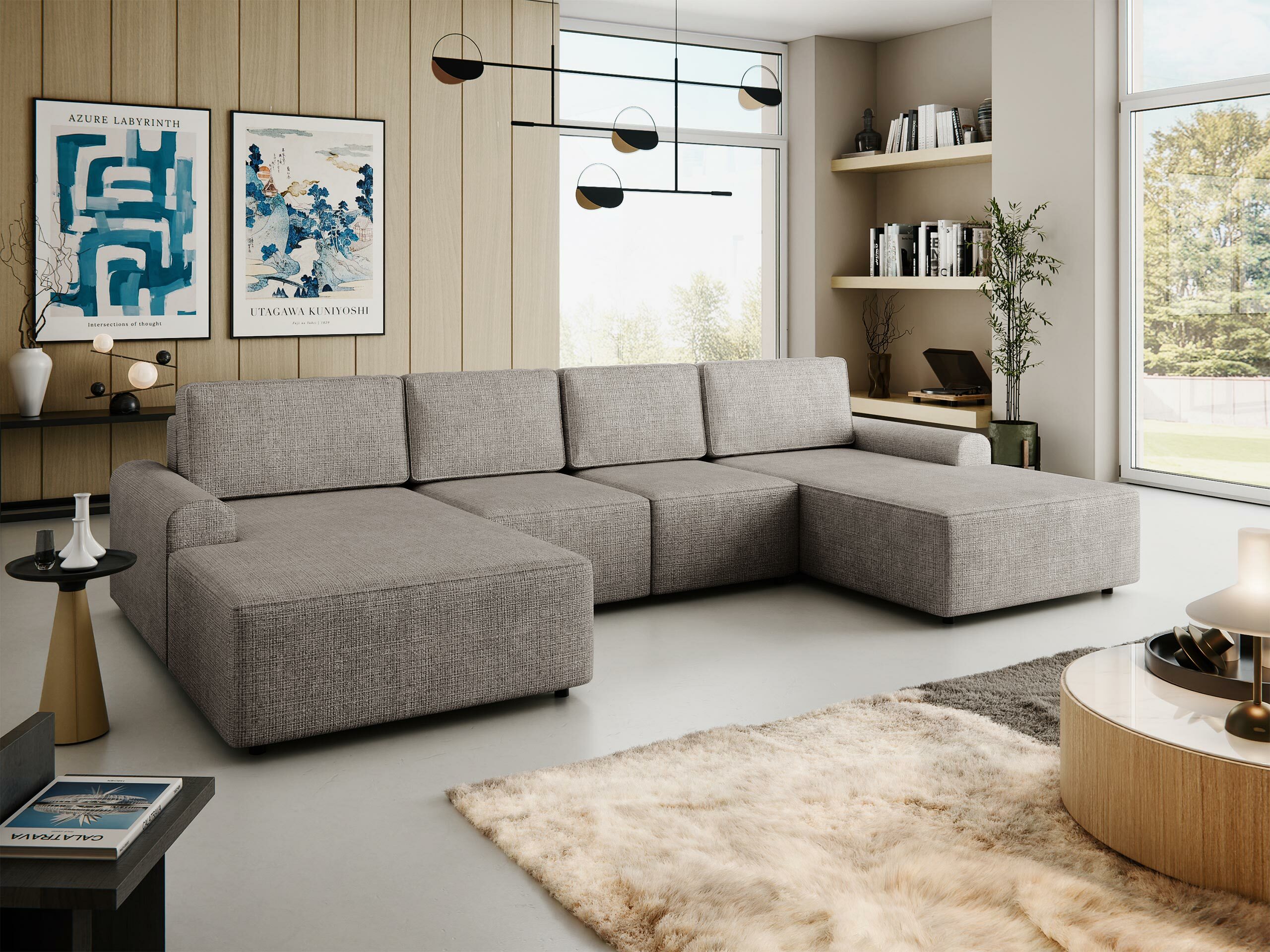 Материята на гърба на мебелите не се различава от материята на основата. Можете да поставите мебелите с тази функция в средата на стаята.