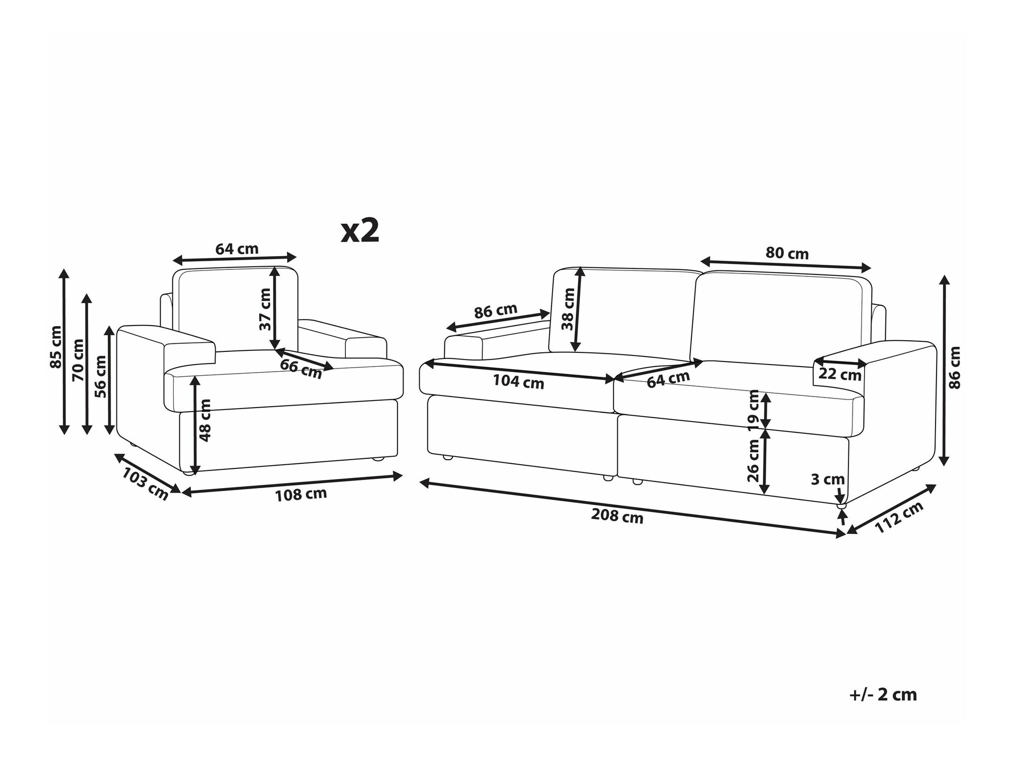 86 x 208 x 112 cm