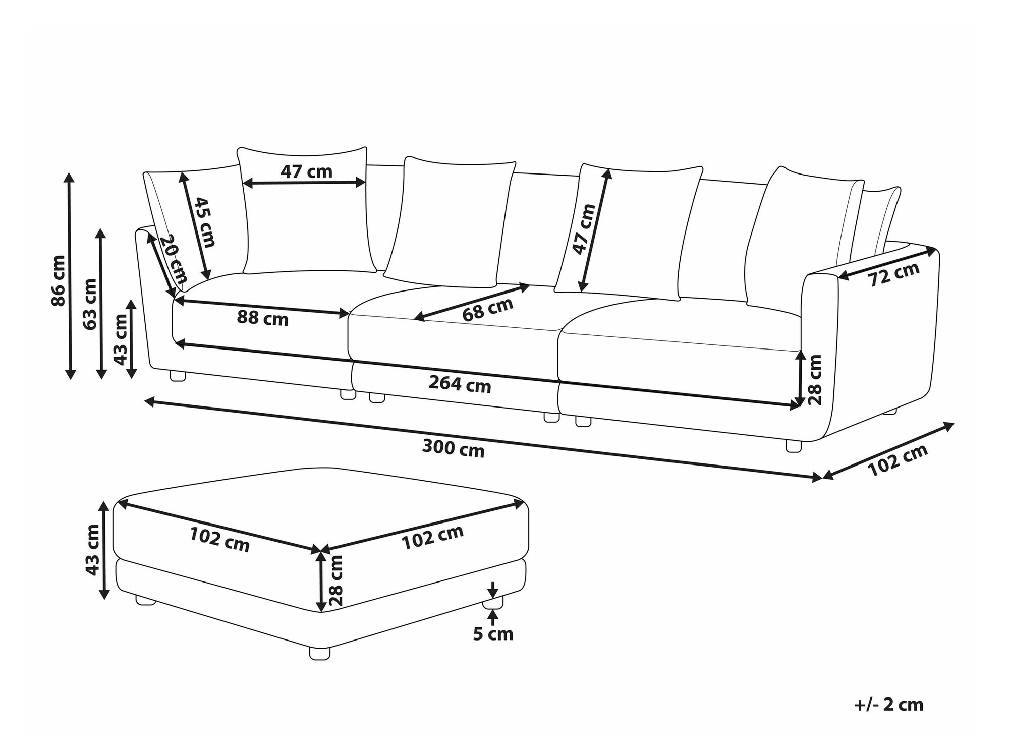 86 x 300 x 102 cm