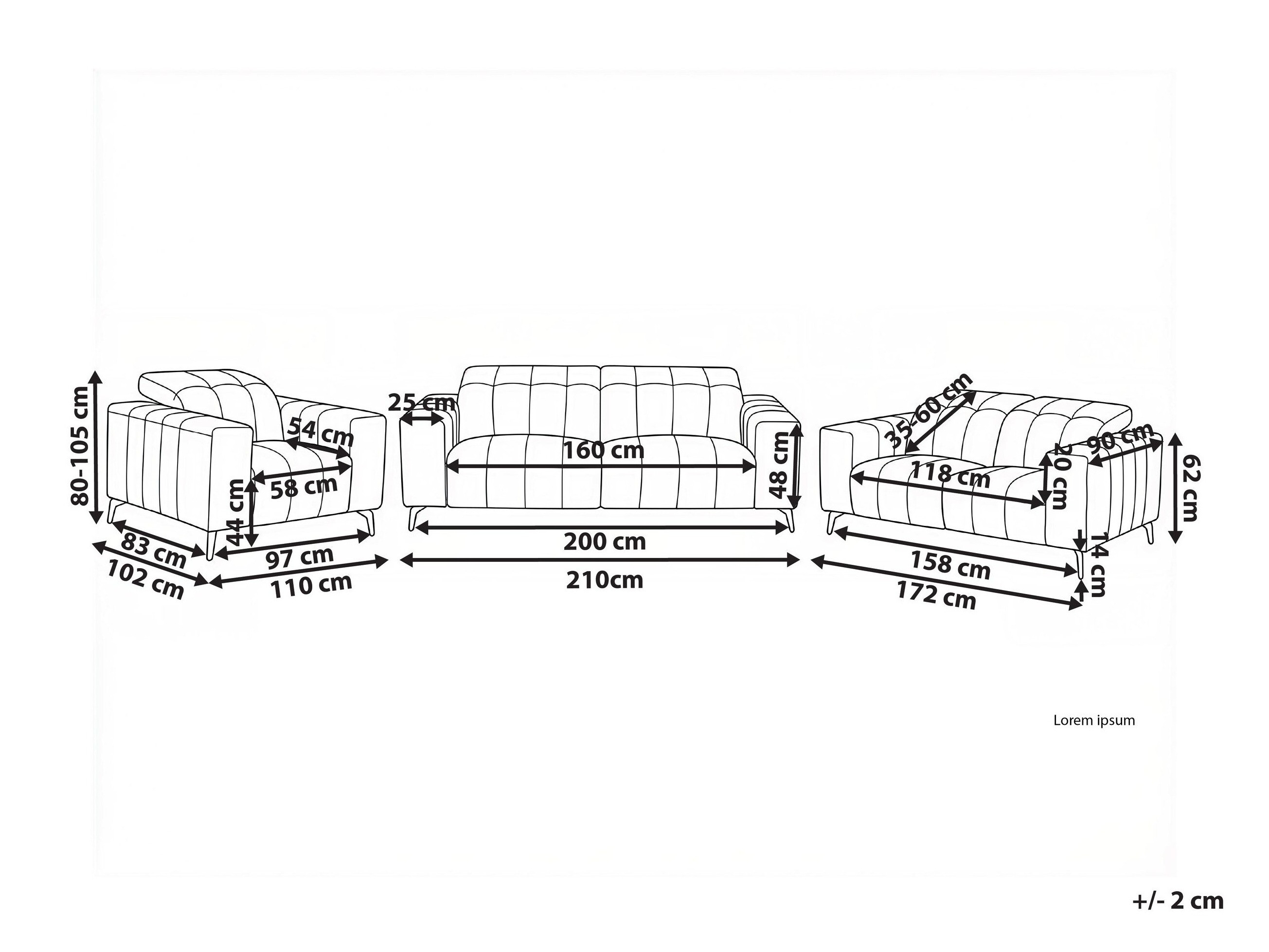 80 x 210 x 102 cm