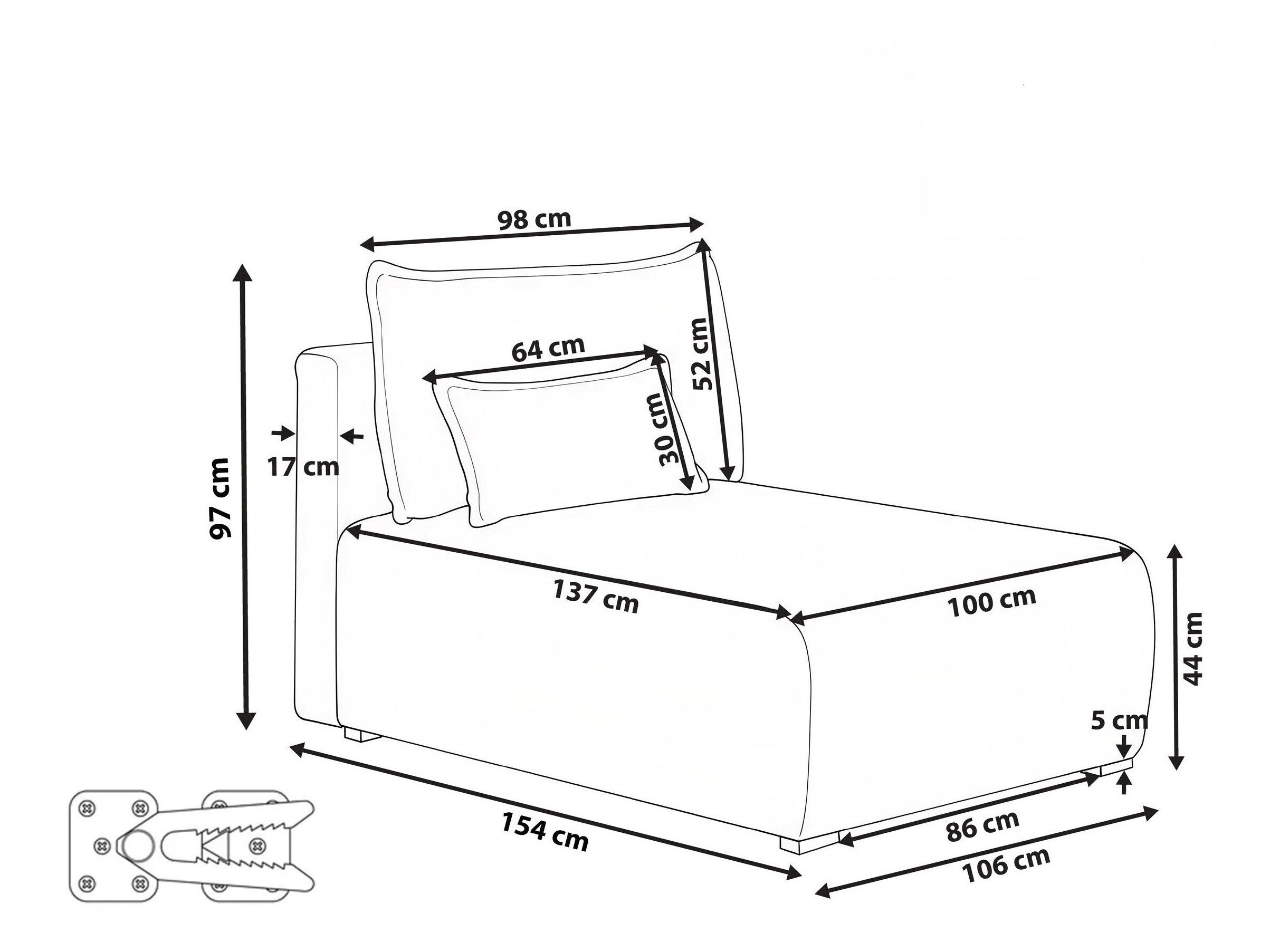 Дебелина на облегалката: