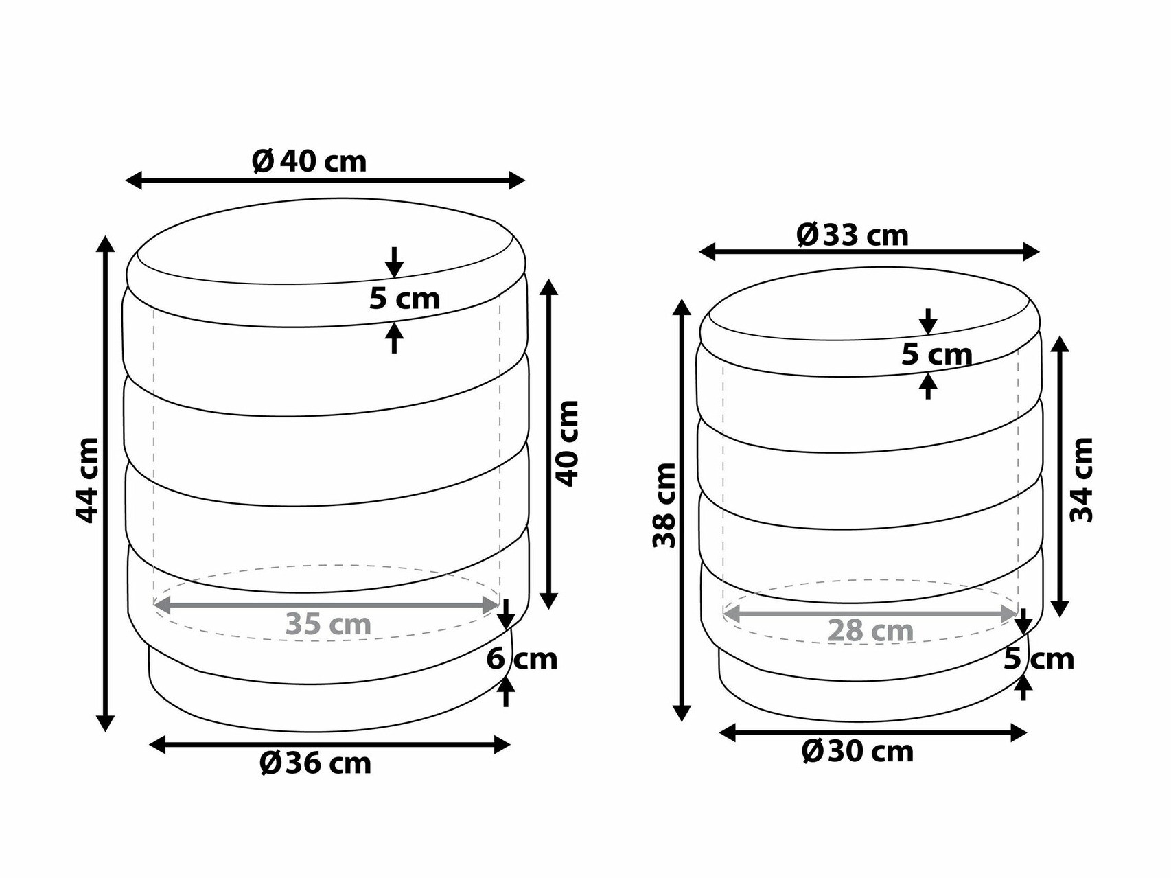 Размер на пуфа: