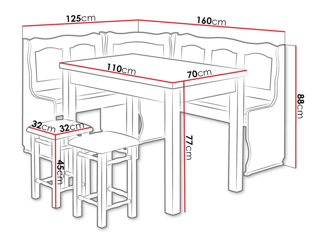 88 x 160 x 125 cm