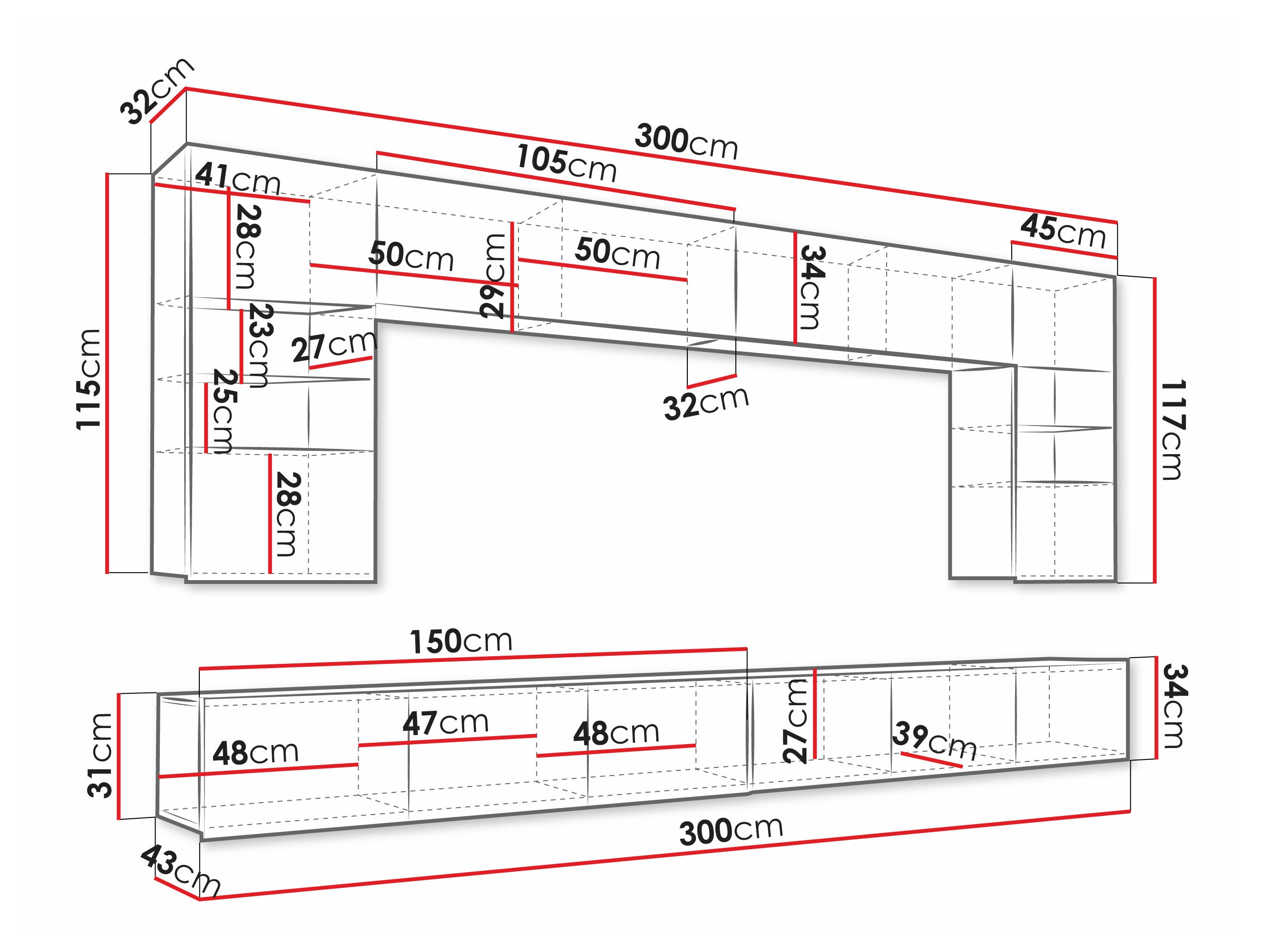 31 x 300 x 43 cm