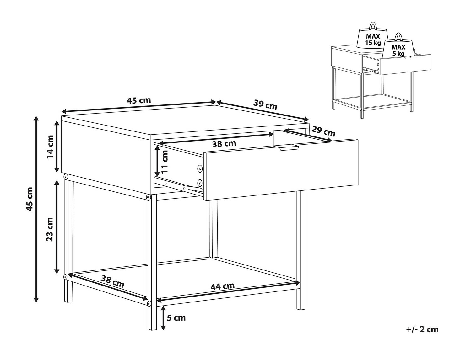 Максимално натоварване на чекмеджето: