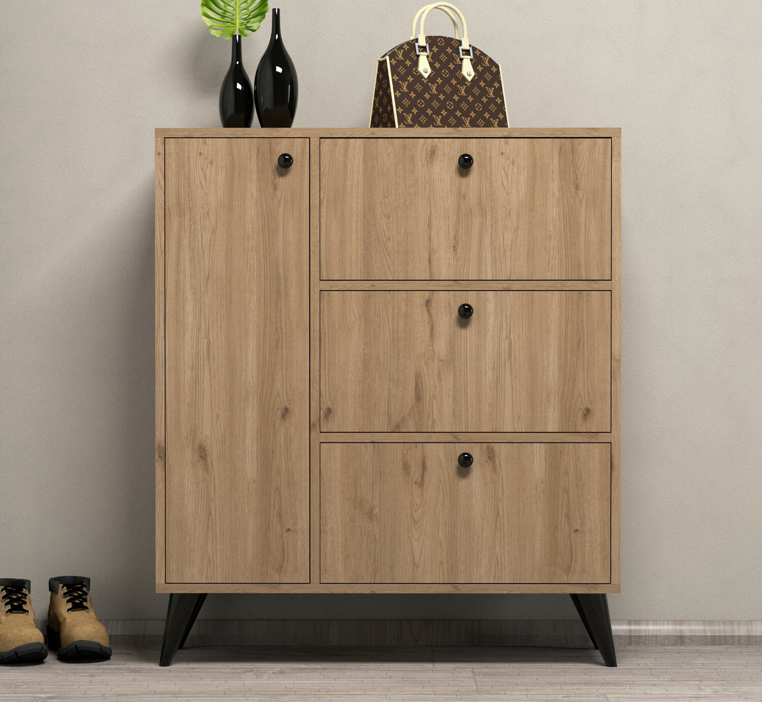 Шкафът е добър, просторен, въпреки че с такова пространство би изисквал повече вътрешни рафтове - прегради! Но като цяло е ОК.