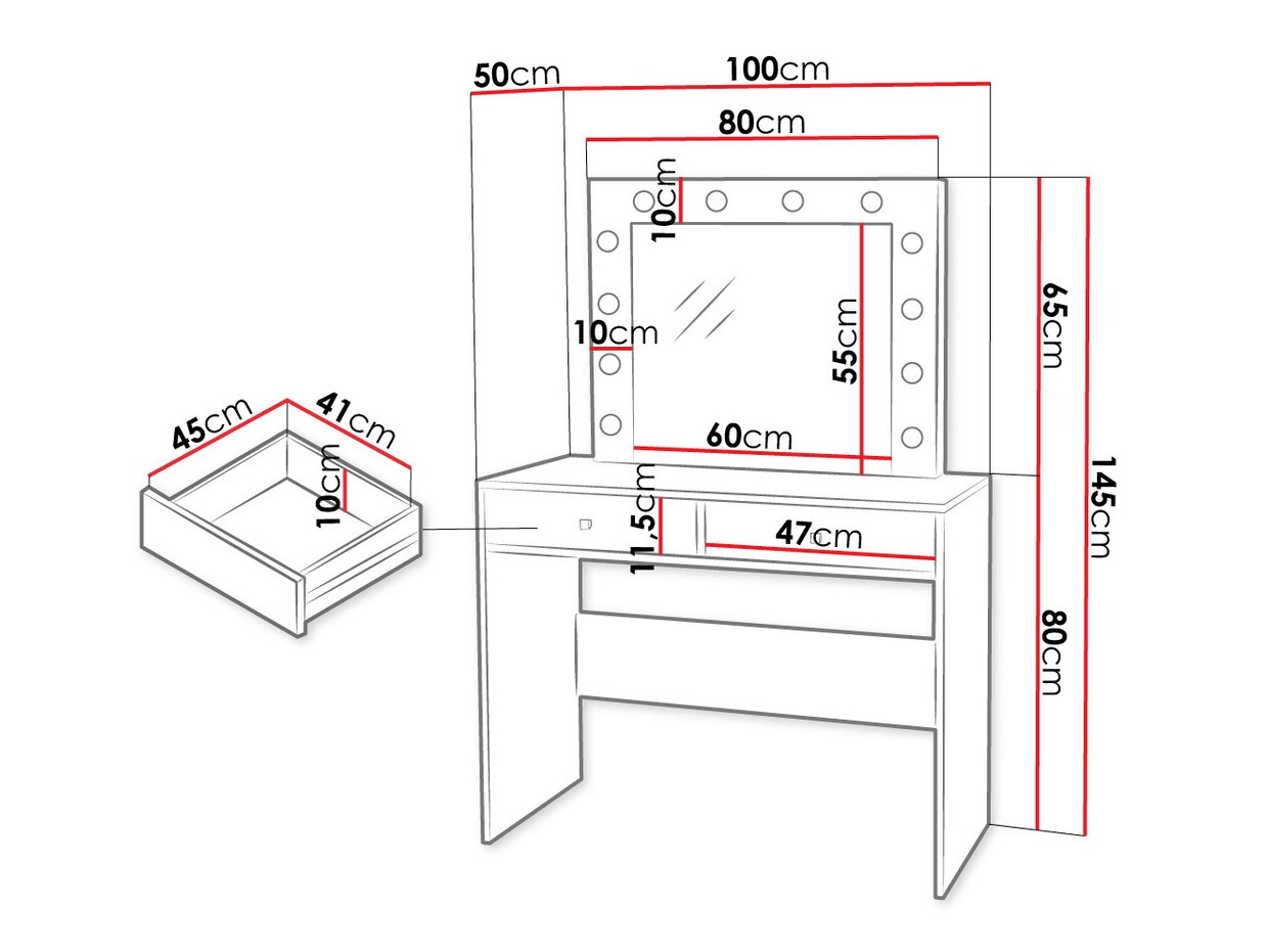 Тоалетката е много красива, вграденото осветление е достатъчно дори за стаята. Дъщеря ми е много доволна, препоръчвам.