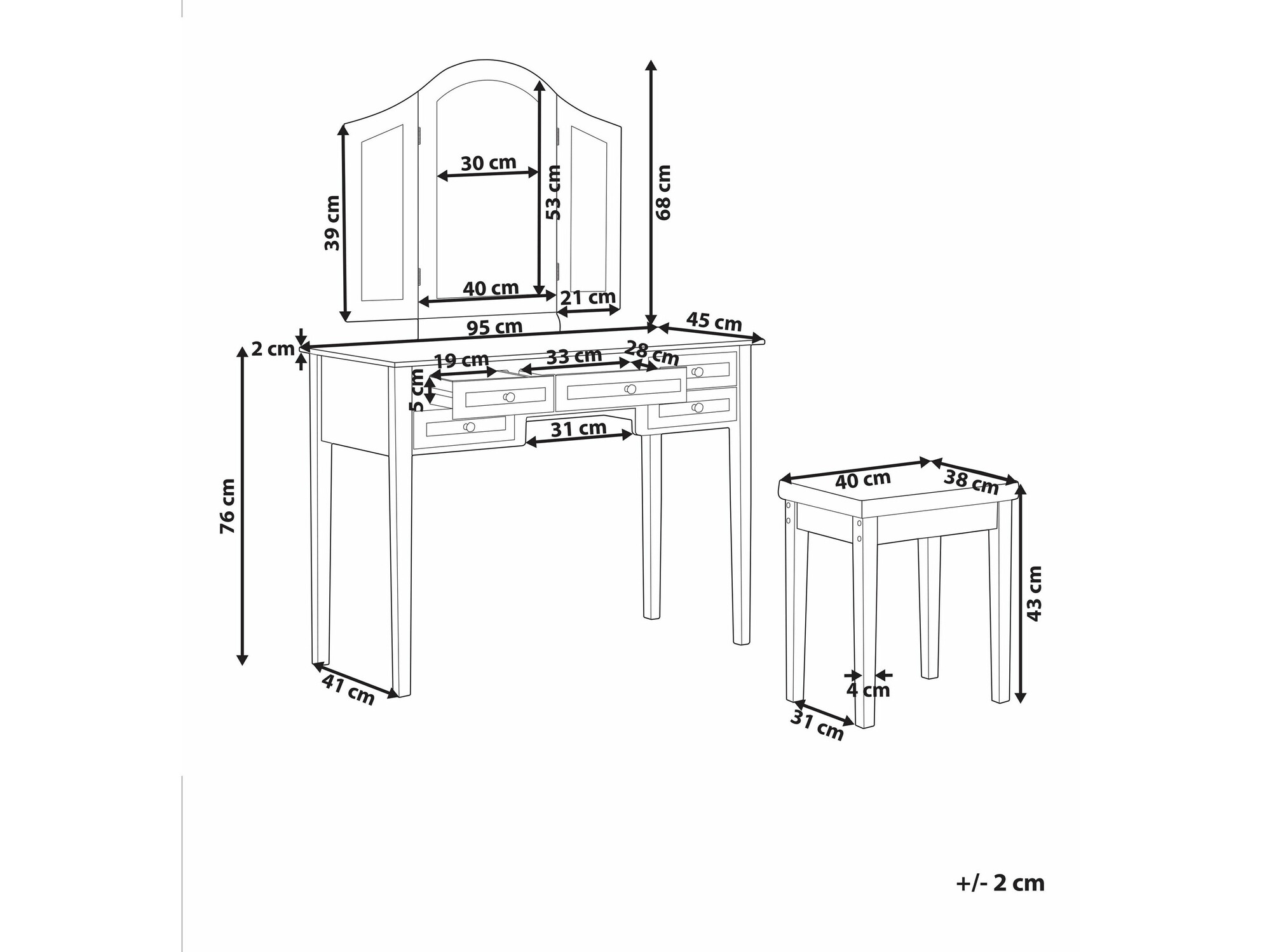 43 x 40 x 38 cm